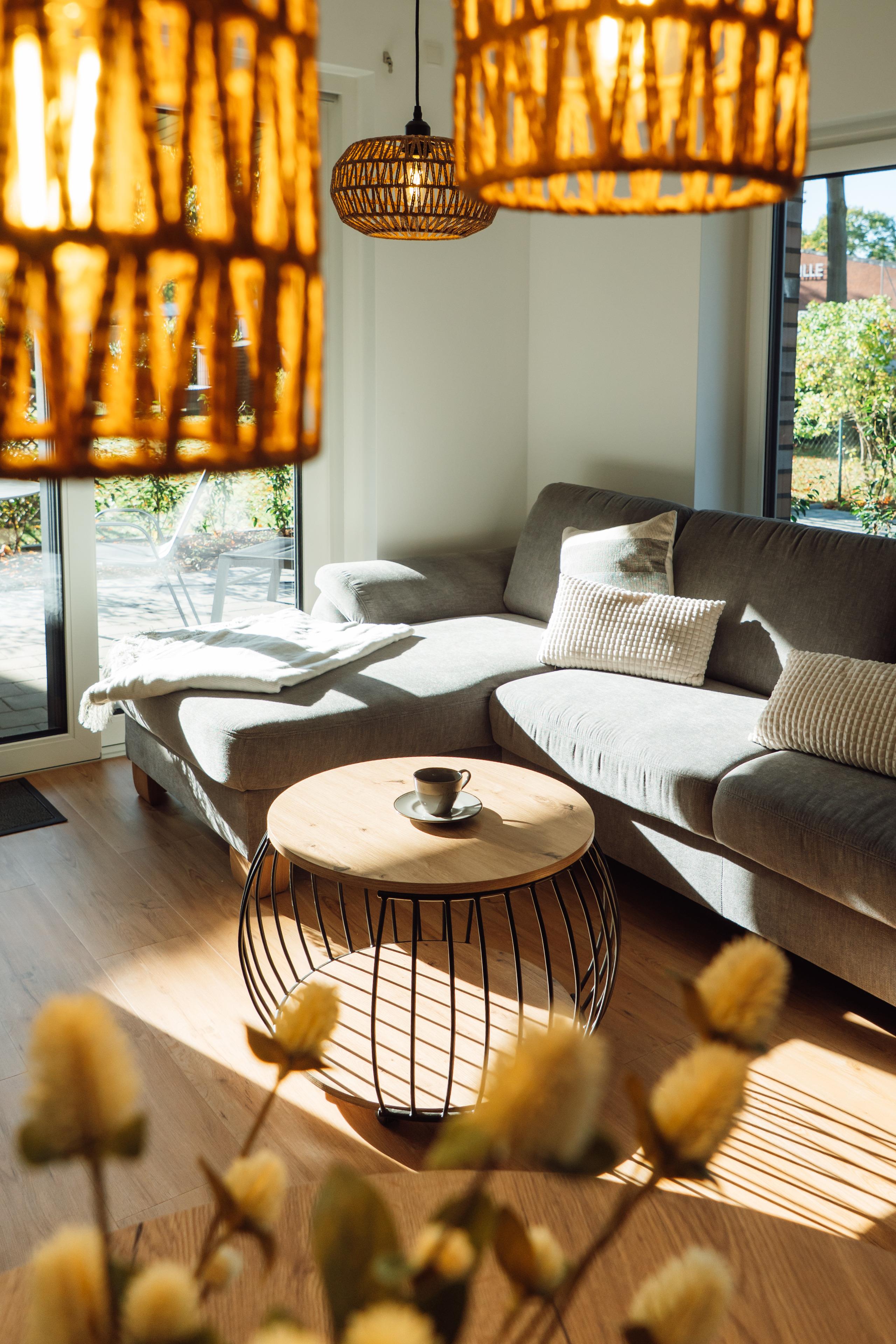 Im Wohnbereich erwarten dich gemütliche Polster, stilvolle Akzente und viel Raum für gemeinsame Stunden. Dank Fußbodenheizung und Smarthome-Technik (u.a. elektrische Verdunklung und Lüftungsanlage) genießt du Komfort auf Knopfdruck.