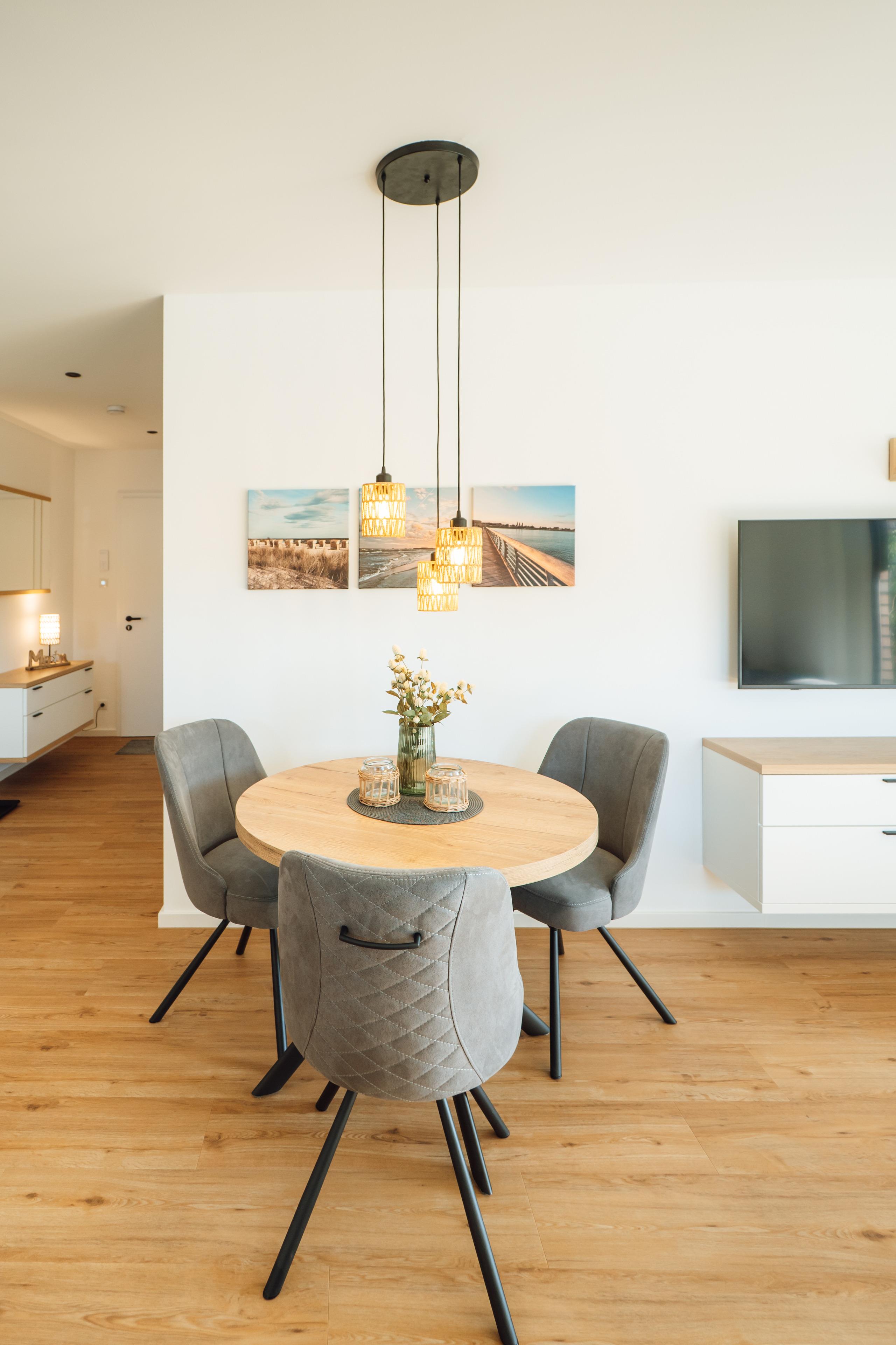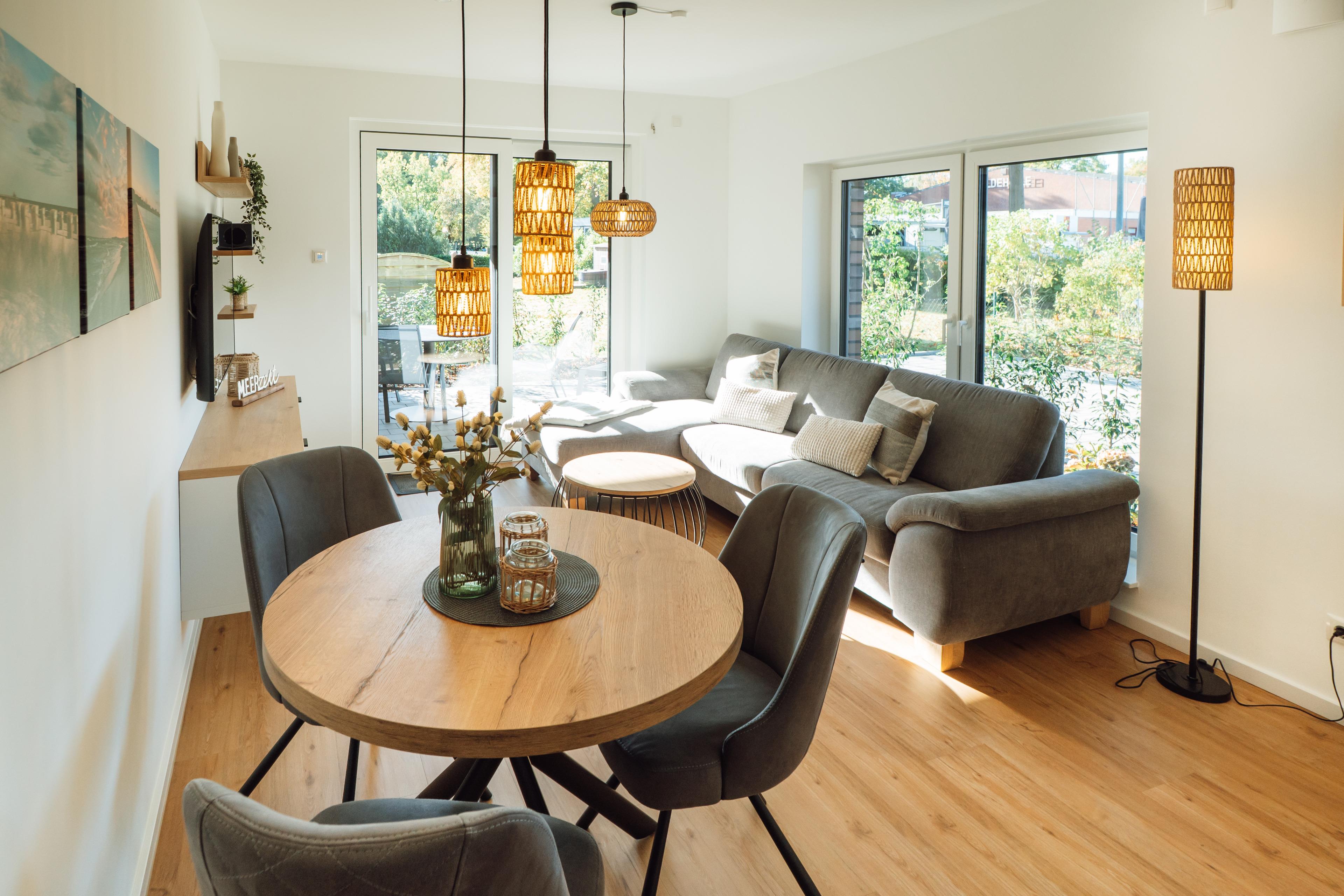 Modernes, barrierearmes Apartment im Erdgeschoss. 69 m² Komfort mit Fußbodenheizung, Smart-TVs und Strandnähe – dein stilvolles Apparto in Grömitz.