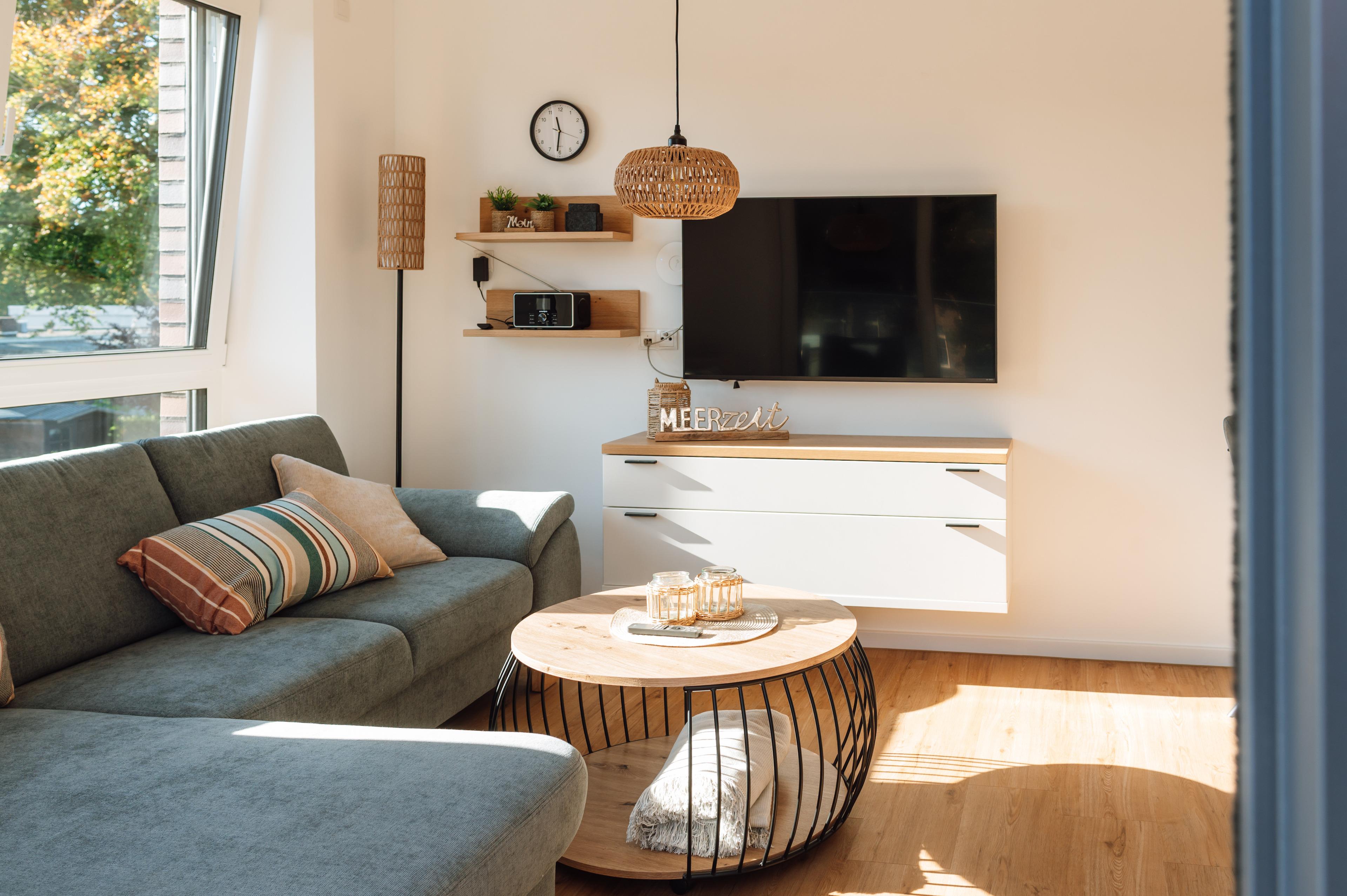 Komfortables Design-Apartment über 2 Ebenen (72 m²) mit 2 Schlafräumen, Fußbodenheizung, Smart-Home und großem Balkon. Perfekt für Paare, Freunde & Familien und Strandurlaub in Grömitz.