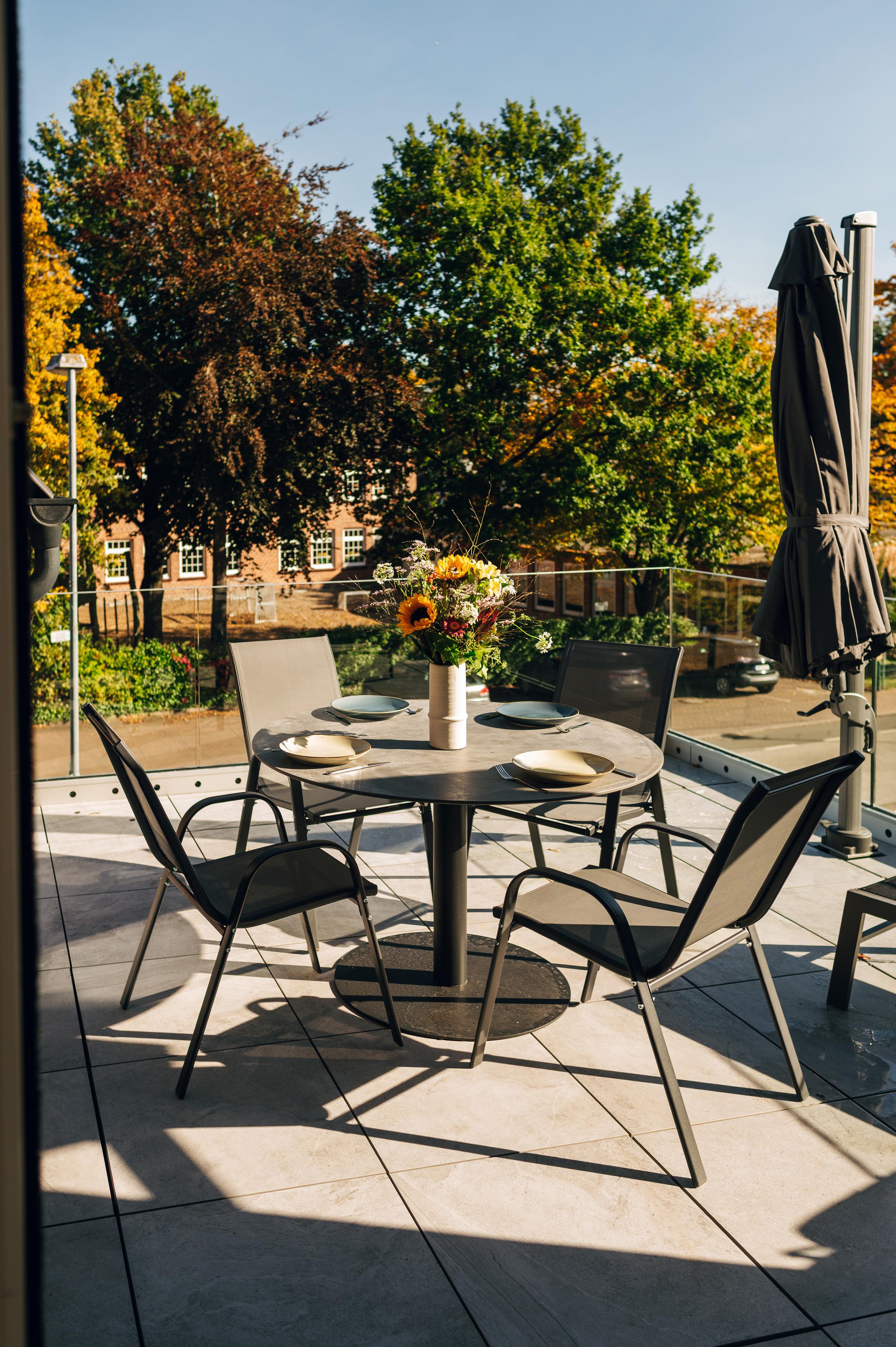 Ein Highlight ist der großzügige Panorama-Balkon, auf dem man den Tag mit einem Kaffee in der Morgensonne beginnen oder mit einem Glas Wein ausklingen lassen kann.