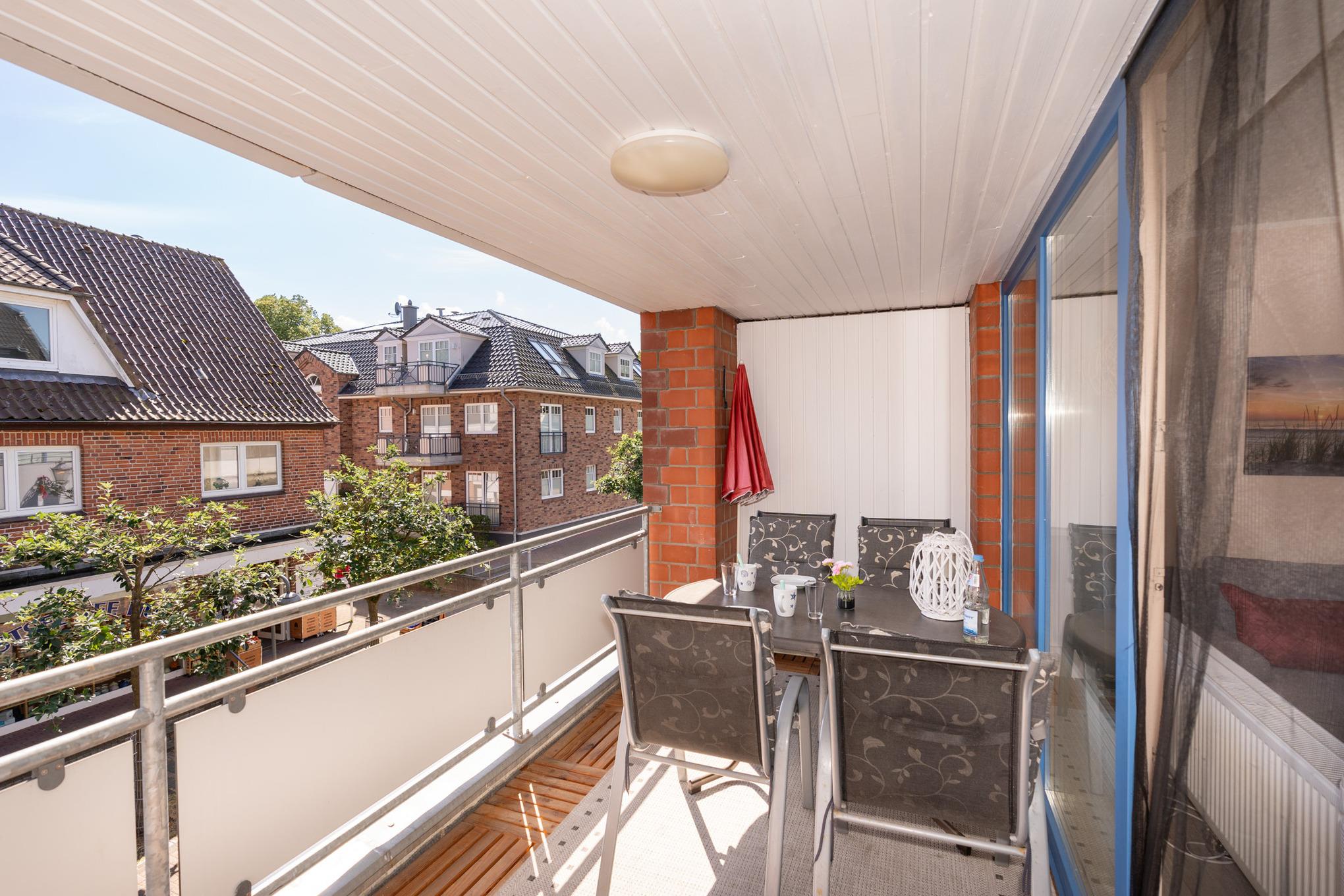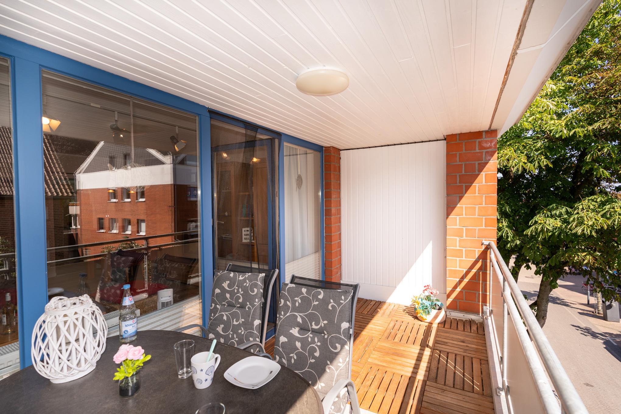 Willkommen in Ihrer Ferienwohnung: 43m² mit Balkon im 1. Stock. Zentral gelegen, nur 750m vom Strand entfernt.