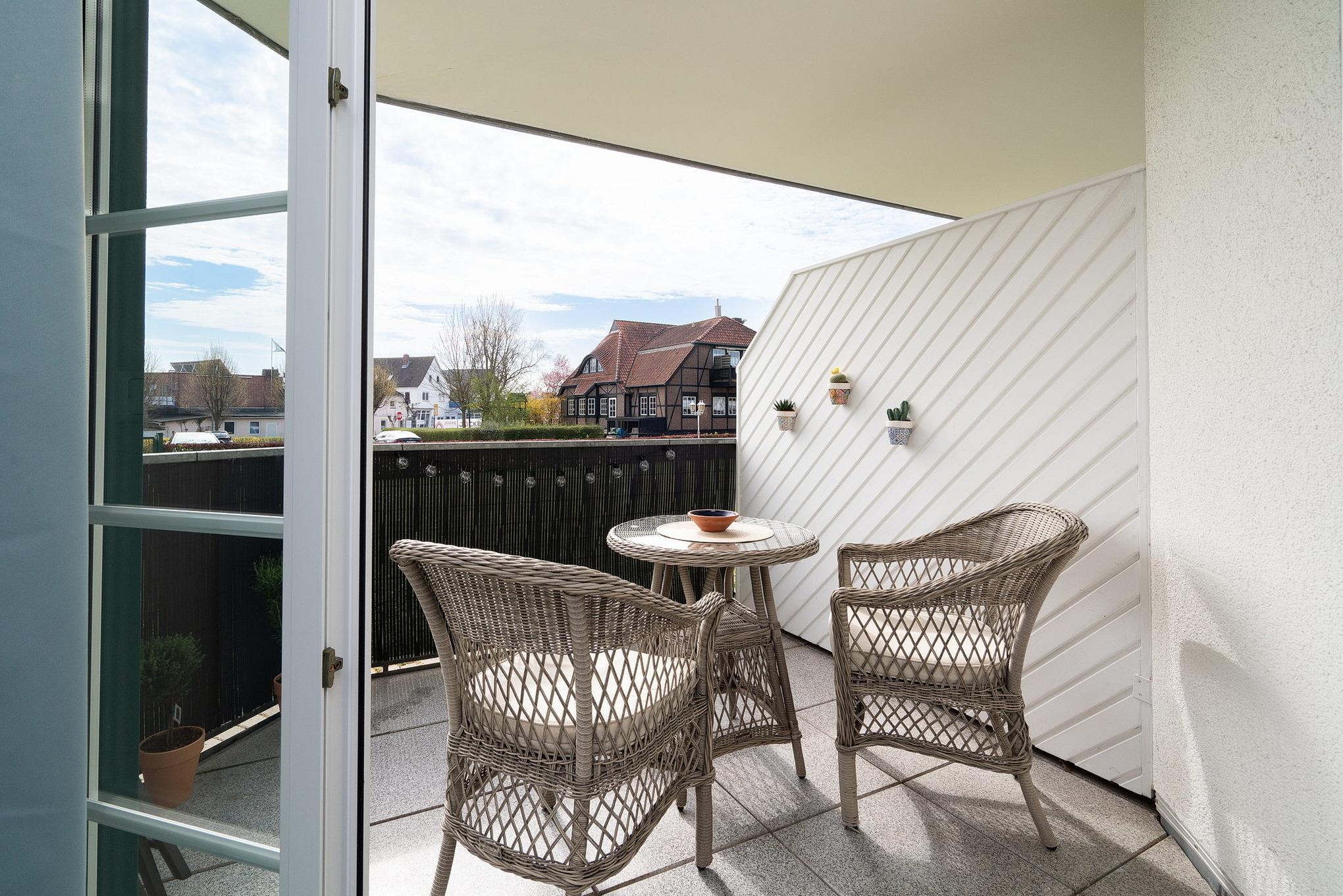 Balkon (Sonne bis nachmittags). Waschmaschine und Trockner gegen Gebühr im Haus. Kostenloser WLAN-Anschluss. Abschließbarer Fahrradkeller mit Steckdose für Elektroräder und PKW-Stellplatz in der Tiefgarage (Einfahrt: 1,90m Hoch) . Die Wohnung erreichen Sie von dort barrierefrei über den Fahrstuhl.
