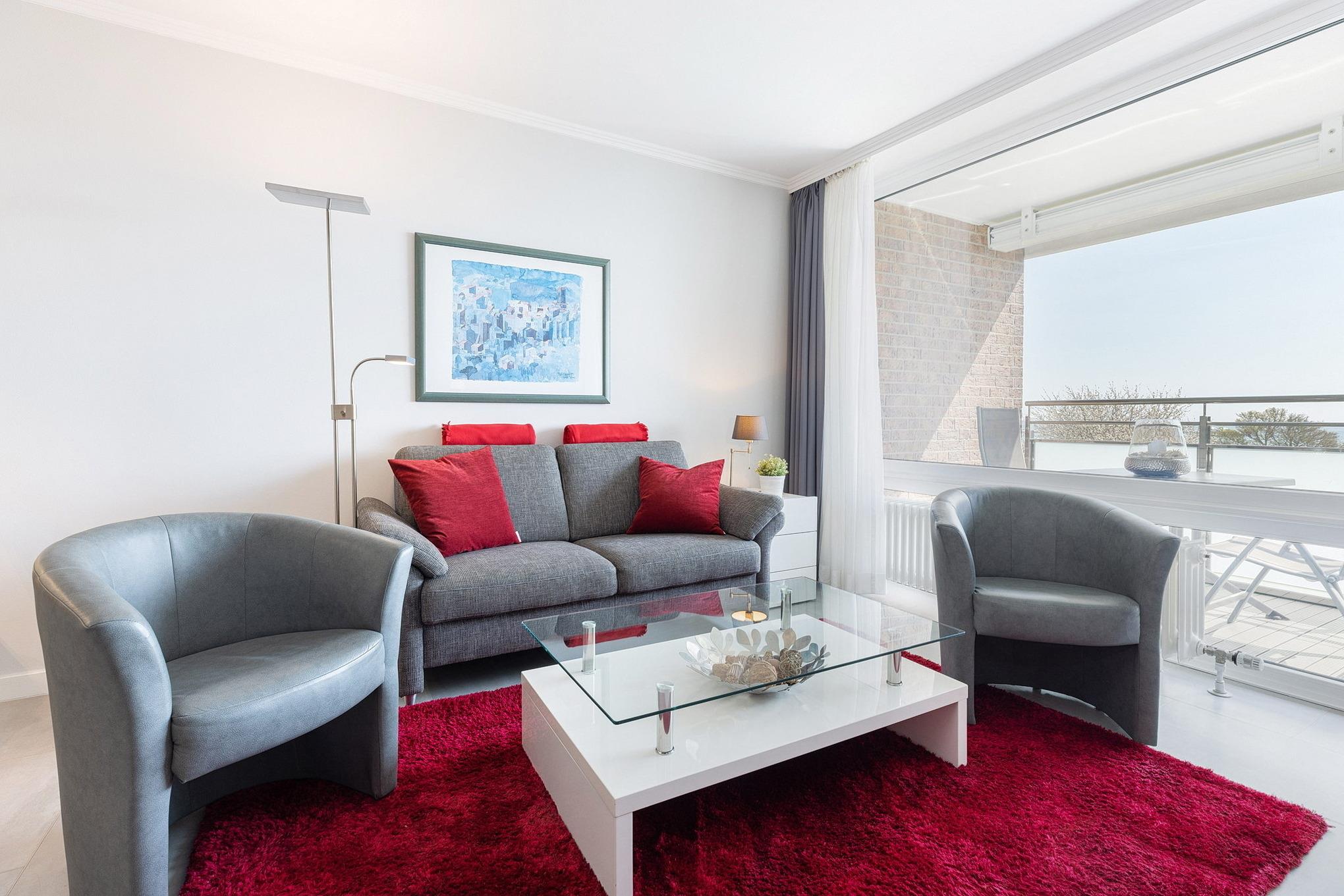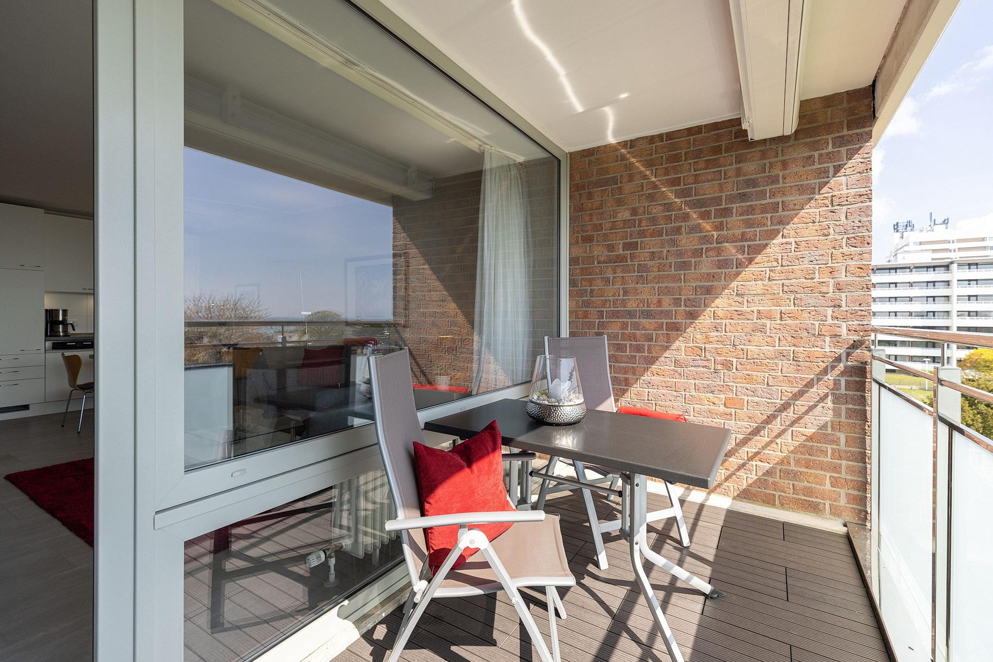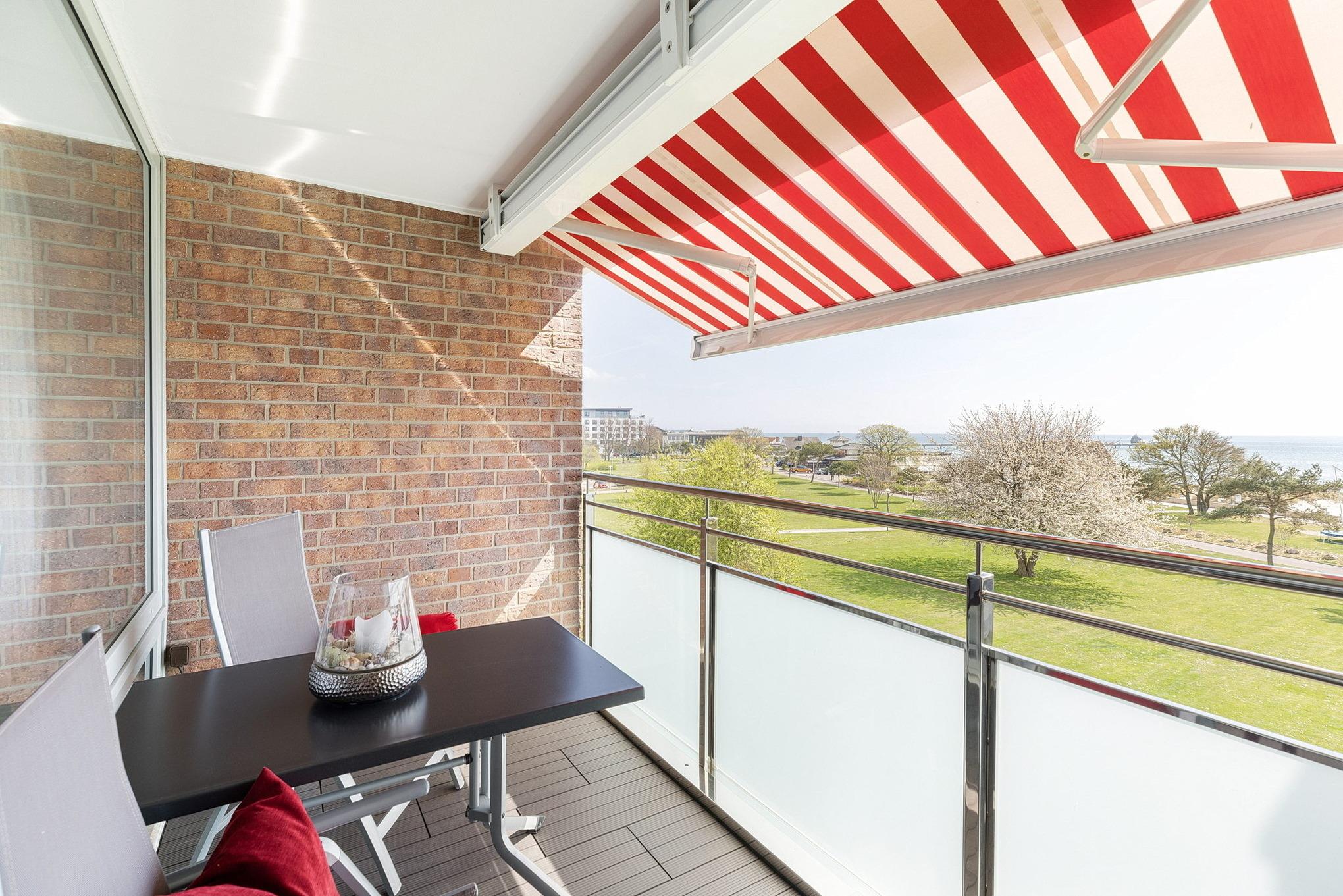 Moderne Ferienwohnung in Grömitz mit Balkon, Meerblick und zentraler Lage, ideal für entspannte Tage am Strand.