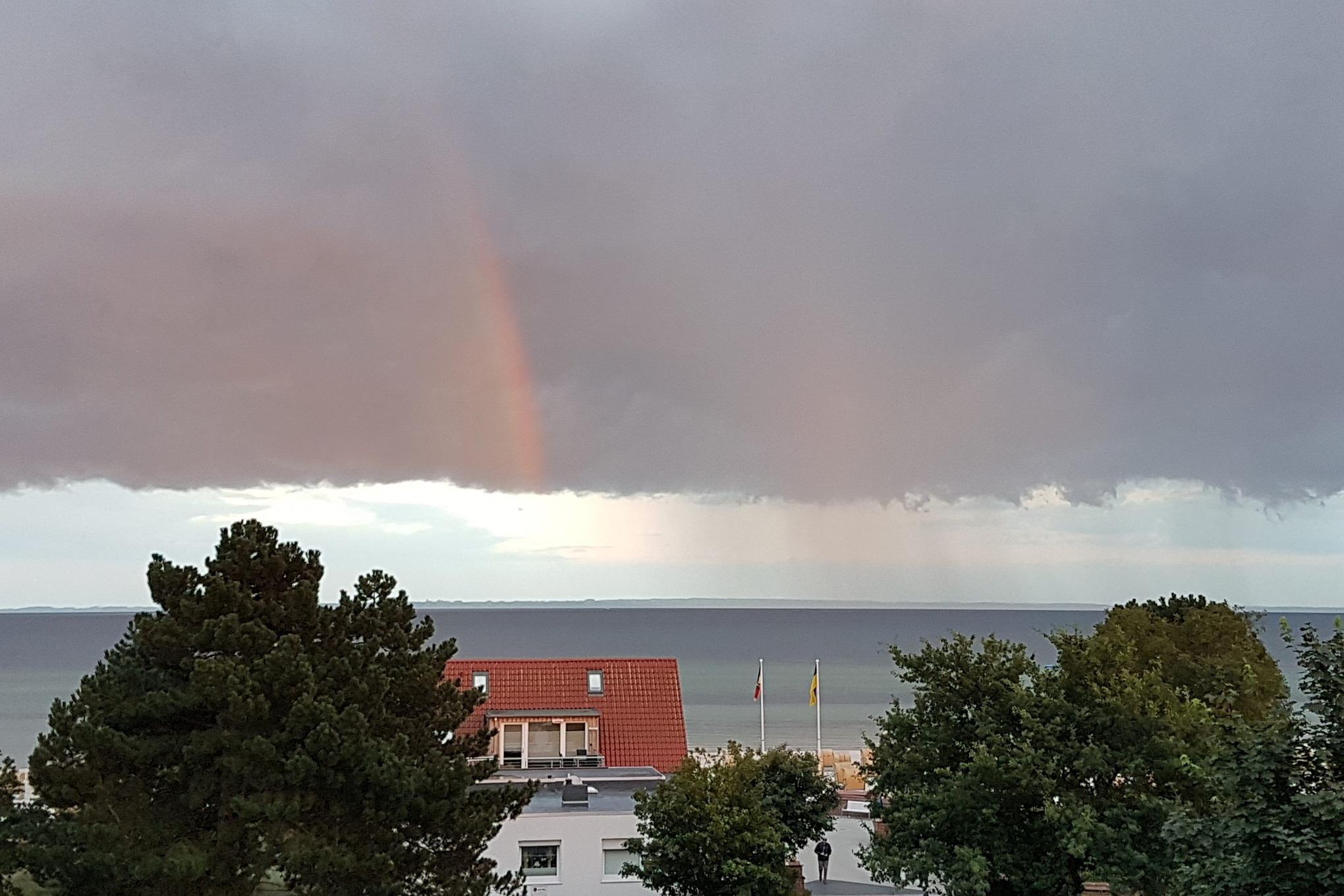 Balkon in süd-östliche Richtung mit Markise und schönem Meerblick, PKW-Stellplatz am Haus, Waschmaschine und Trockner befinden sich im Haus und können gegen Gebühr benutzt werden. Kostenloser WLAN-Anschluss. 2 Abstellplätze im geschlossenem Fahrradraum (Gemeinschaftseigentum).