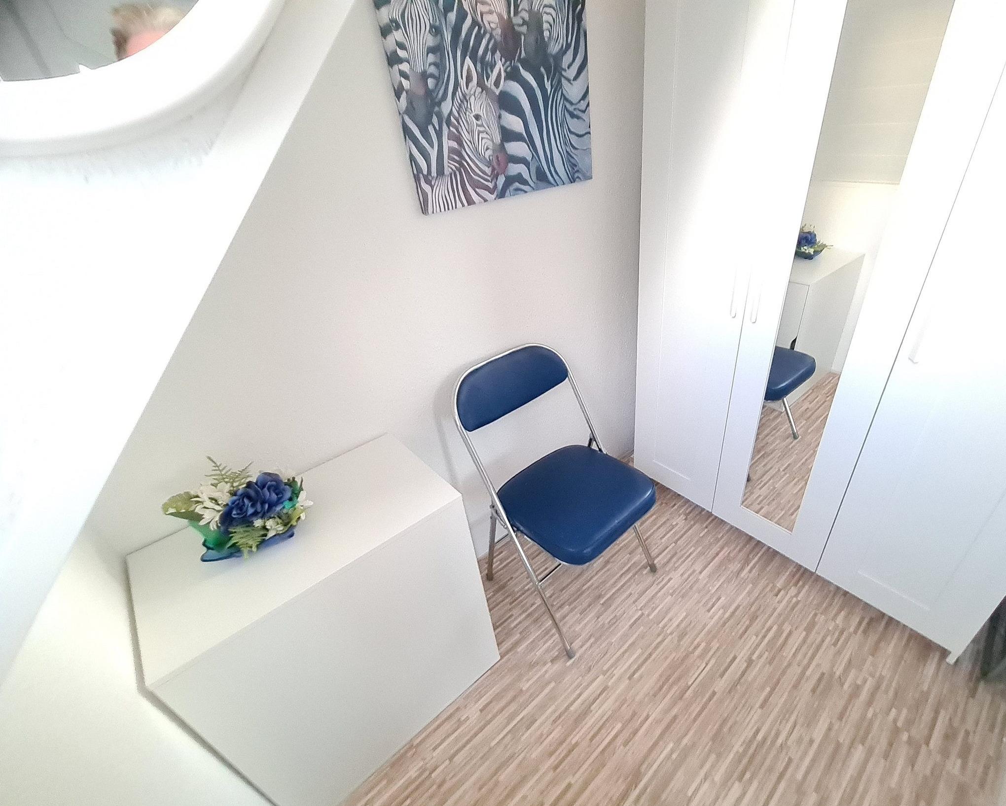 Kleine separate Abstellkammer als Kleiderschrank benutzbar.