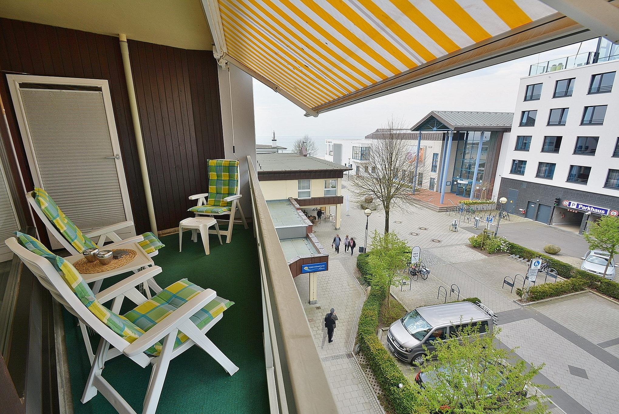 Sonniger Balkon mit Markise in westliche Richtung mit seitlichem Meerblick, Tiefgaragen-Stellplatz (Höhe 1,85m), Wäschetrockner und Waschmaschine gegen Gebühr im Haus.