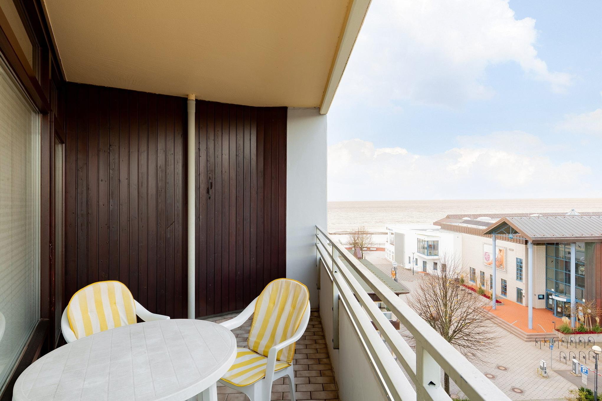 Balkon in westliche Richtung mit Blick auf das Meer, Tiefgaragen-Stellplatz (max. 1,90m Höhe), Wäschetrockner und Waschmaschine gegen Gebühr im Haus.