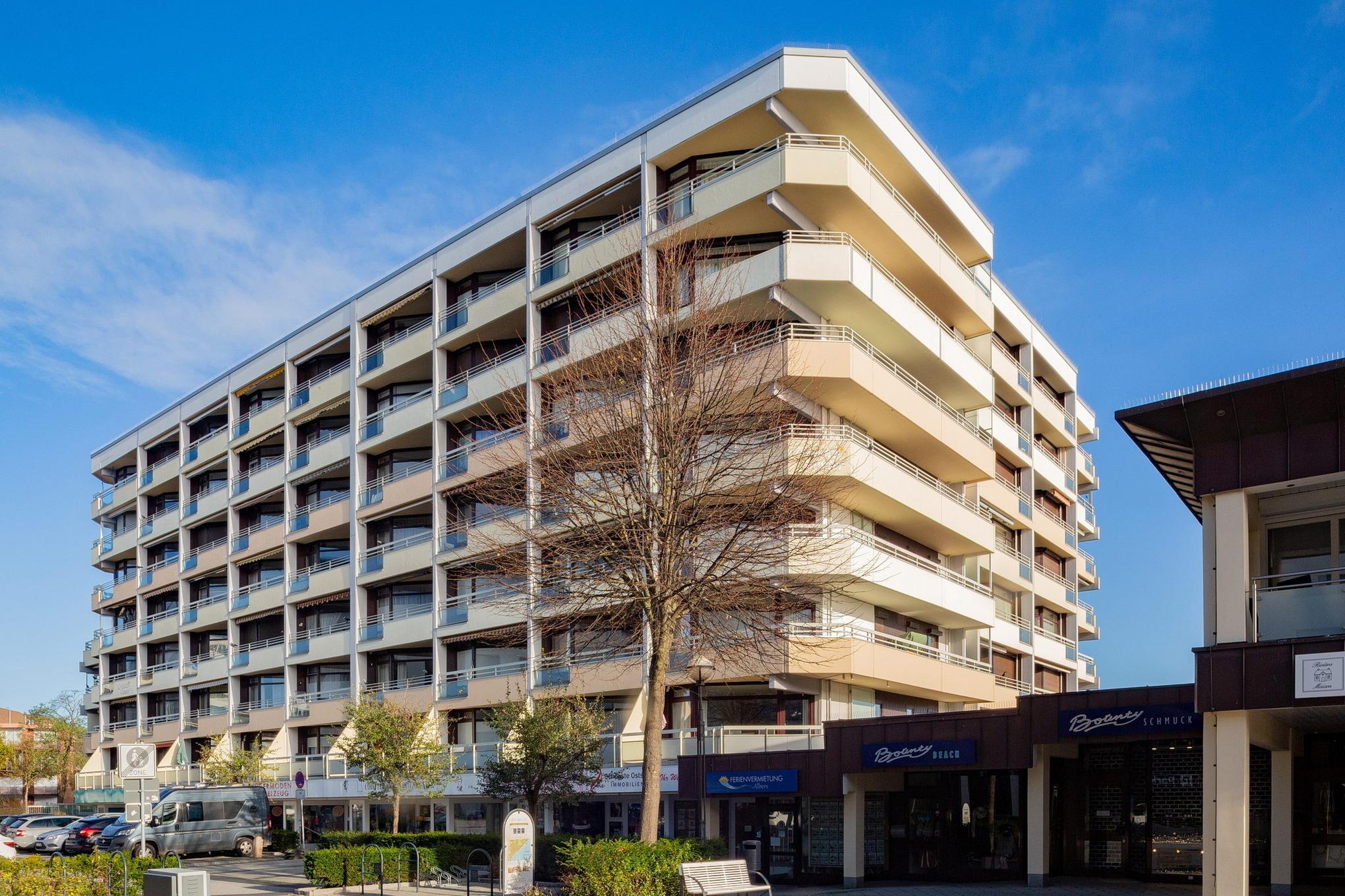 Die Wohnung befindet sich im 6. Stock im Grömitz-Center 1. Ein Aufzug ist in der Nähe vom Parkplatz vorhanden.