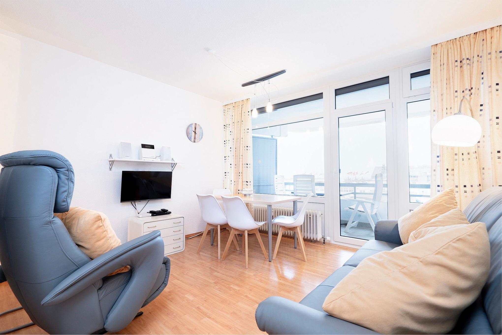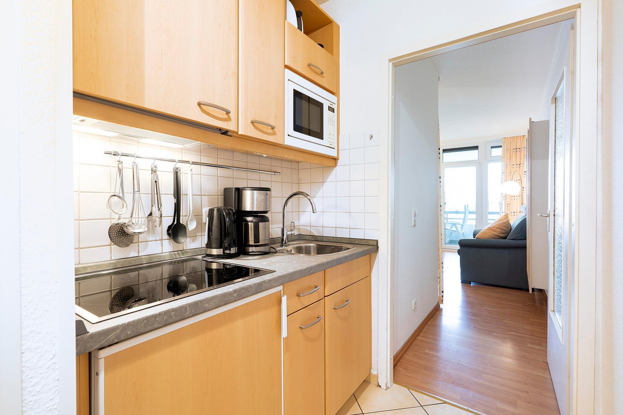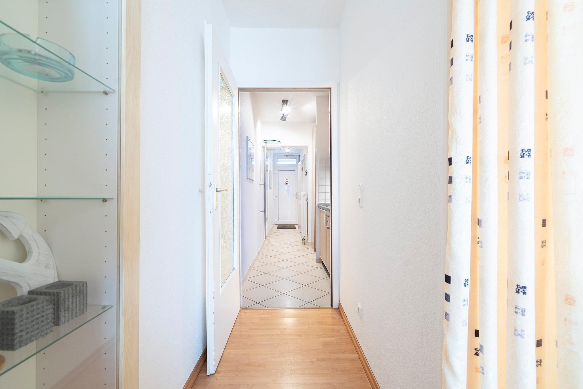 Die Wohnung befindet sich im 3. Stock im Grömitz-Center 2 (Fahrstuhl vorhanden, es führen 4 Stufen zur Wohnung)