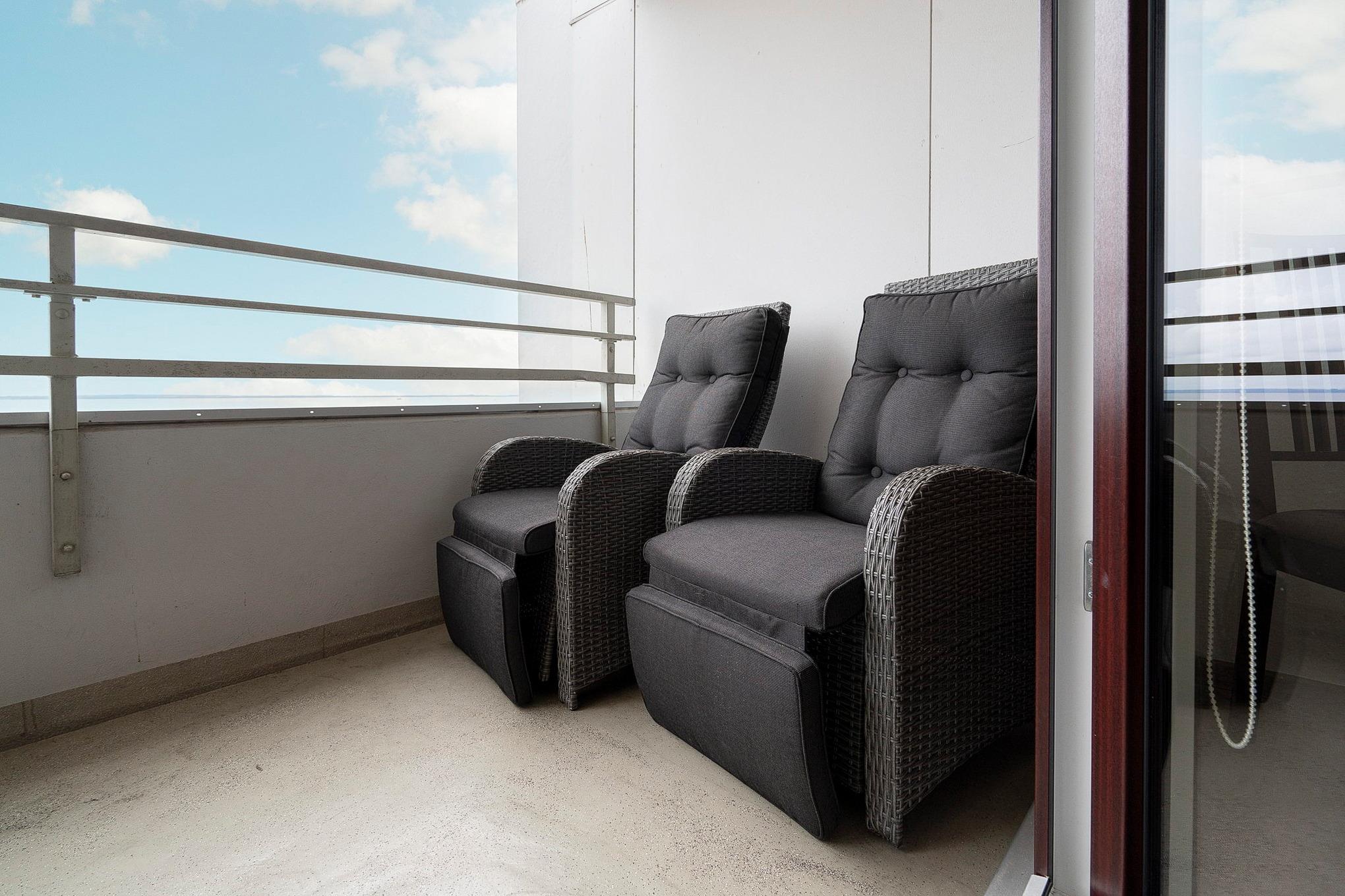 Balkon in südliche Richtung mit Blick auf das Meer und den Yachthafen, Tiefgaragen-Stellplatz neben dem Eingang (Durchfahrtshöhe: 2,00m), Wäschetrockner und Waschmaschine gegen Gebühr im Haus. Kostenloses WLAN.