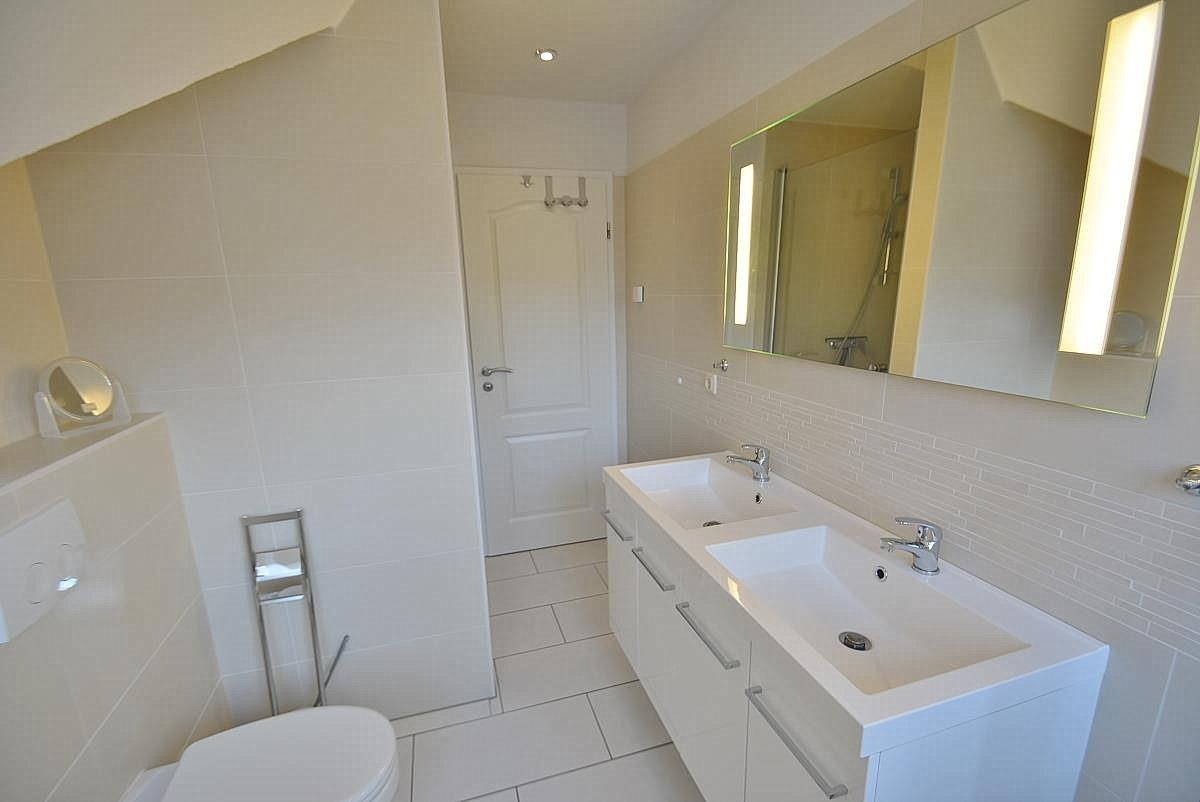 Die Wohnung verfügt über 2 Badezimmer. Das Bad 'en suite' ist ausgestattet mit 2 Waschbecken, einer Dusche und einem WC. Ein 2. kleineres Bad verfügt ebenfalls über eine Dusche, ein Waschbecken, ein WC und einer Waschmaschine.