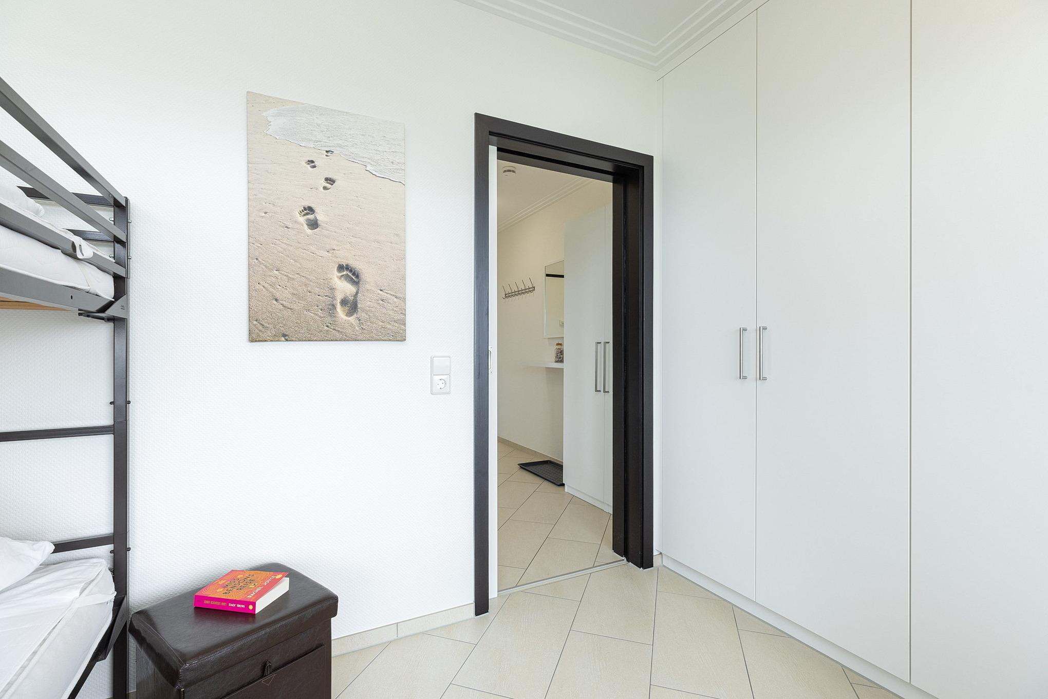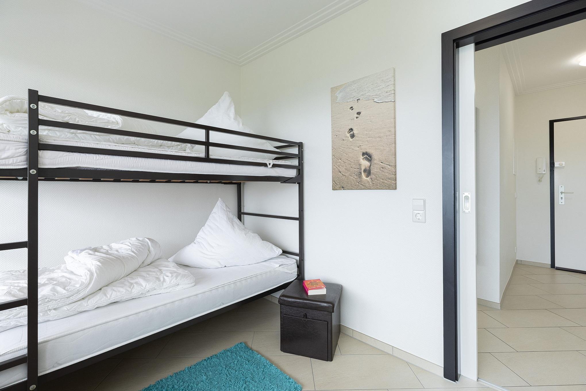 Das separate Kinderzimmer ist mit einem Etagenbett (90x200cm) und einem 4-türigen Kleiderschrank ausgestattet. Das Zimmer ist mit Fliesen ausgelegt; das Fenster lässt sich durch ein Rollo verdunkeln.