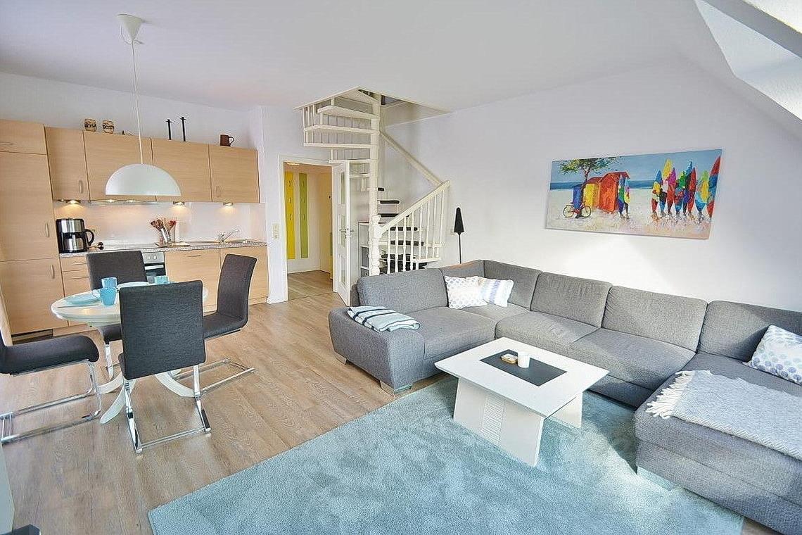 Gemütliche Maisonette-Ferienwohnung in Grömitz nahe Strand, Yachthafen und Promenade mit Balkon und moderner Ausstattung.