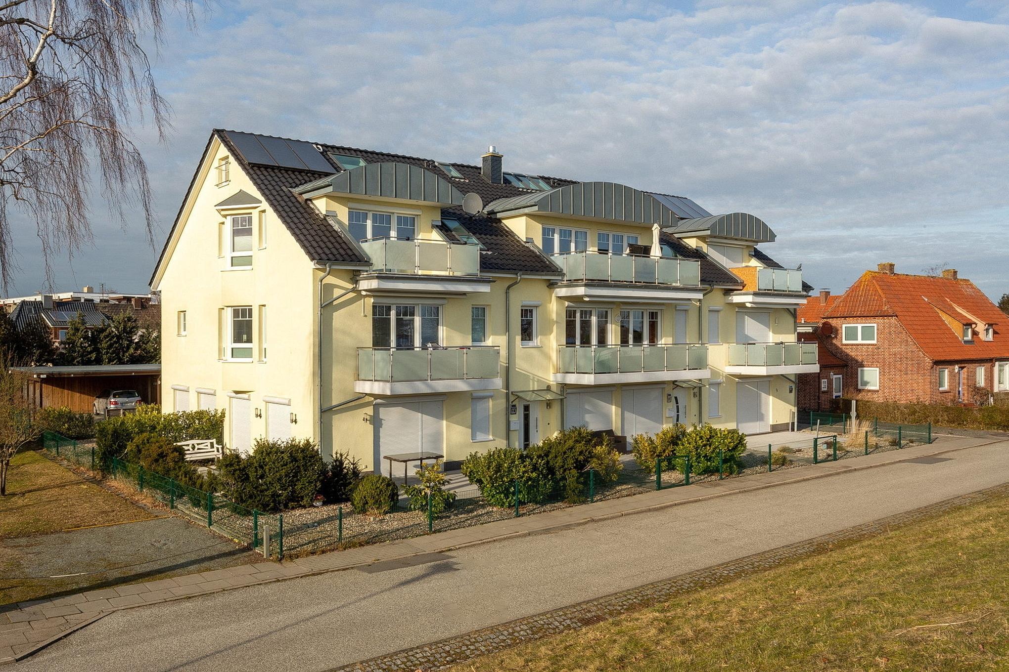 Das Mehrfamilienhaus befindet sich in zentraler, aber ruhiger Lage direkt hinter dem Deich. Der Strand und das Zentrum sind in wenigen Gehminuten zu erreichen. Das Haus verfügt über einen Aufzug.