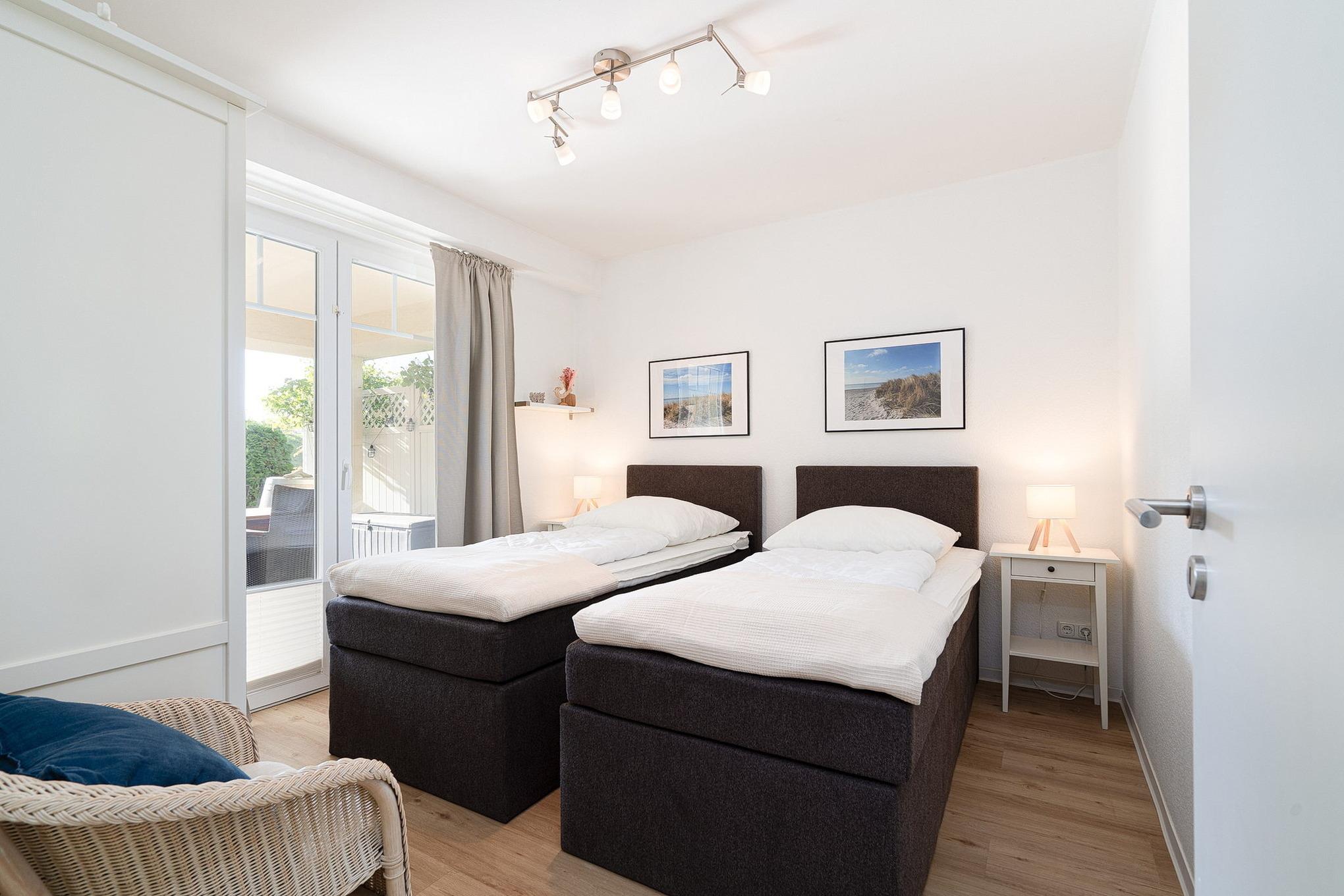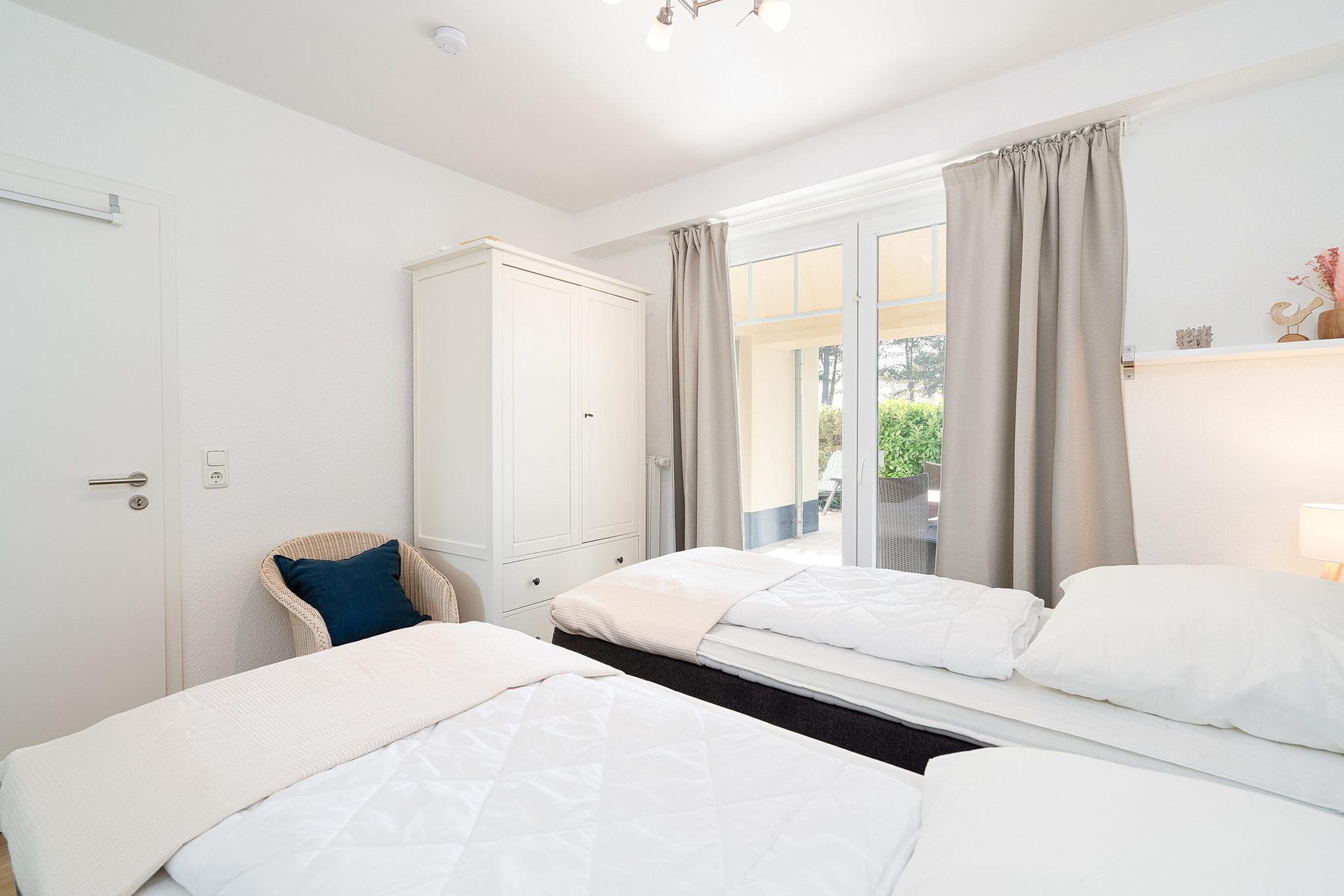 Das Zimmer ist mit einem Schrank und mit zwei Einzelbetten (2x90x200cm) ausgestattet. Das Fenster lässt sich vollständig verdunkeln.