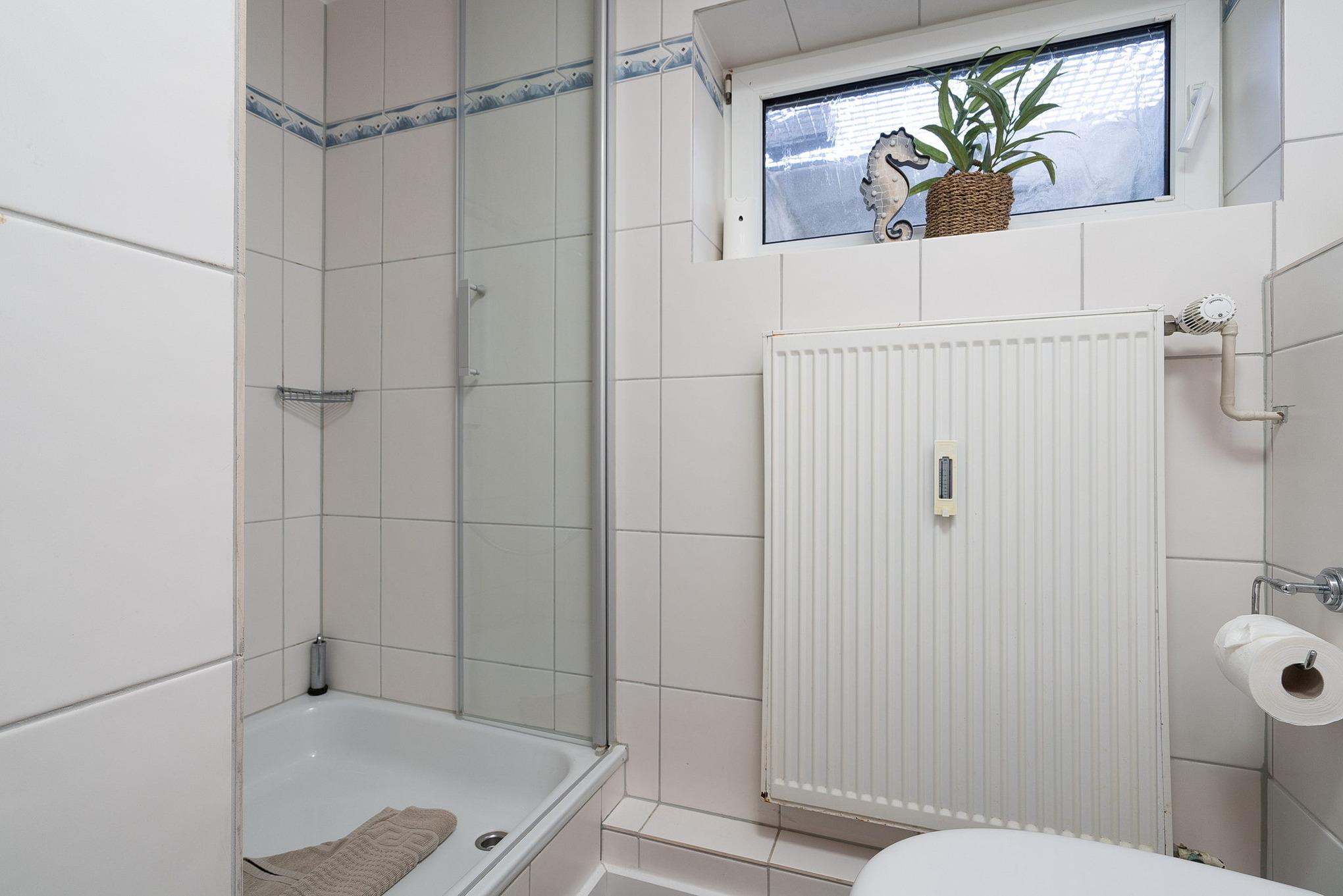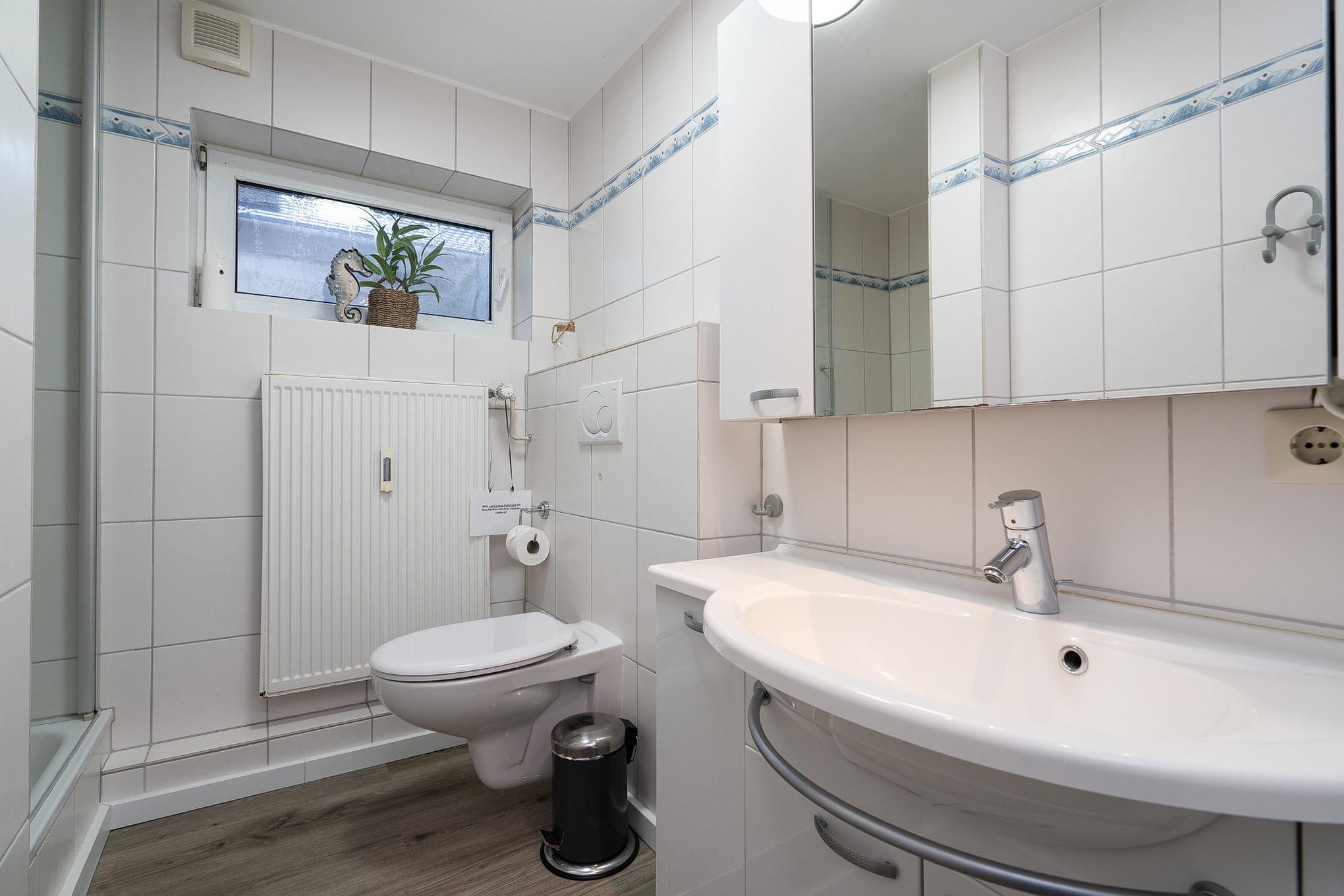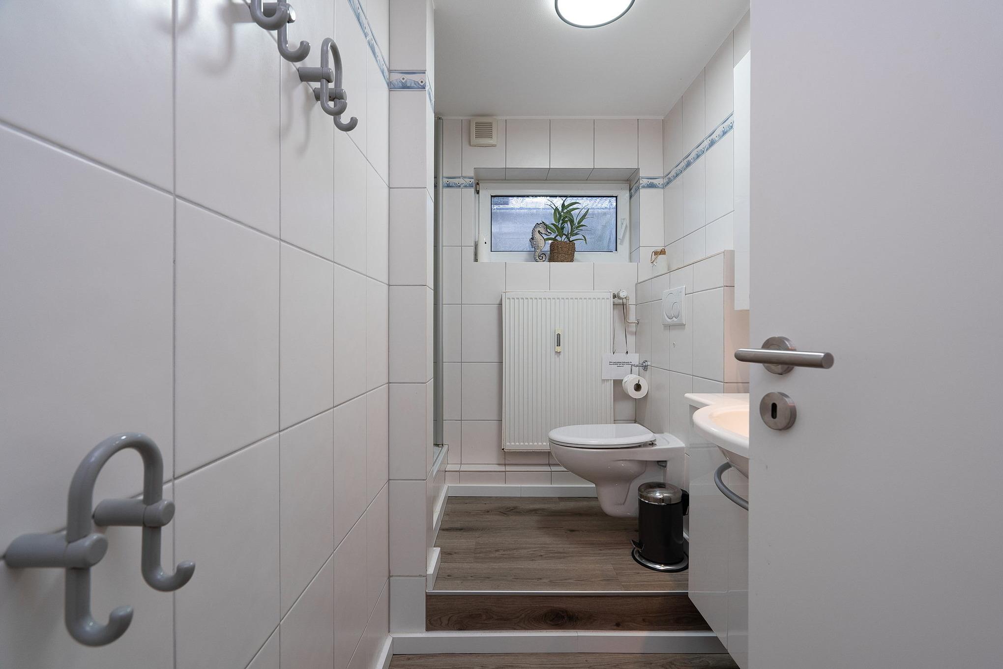 Direkt neben dem Schlafzimmer befindet sich das Tageslichtbad mit WC und Dusche (eine Stufe erhöht) und einer Waschtischanlage mit einem Spiegelschrank.