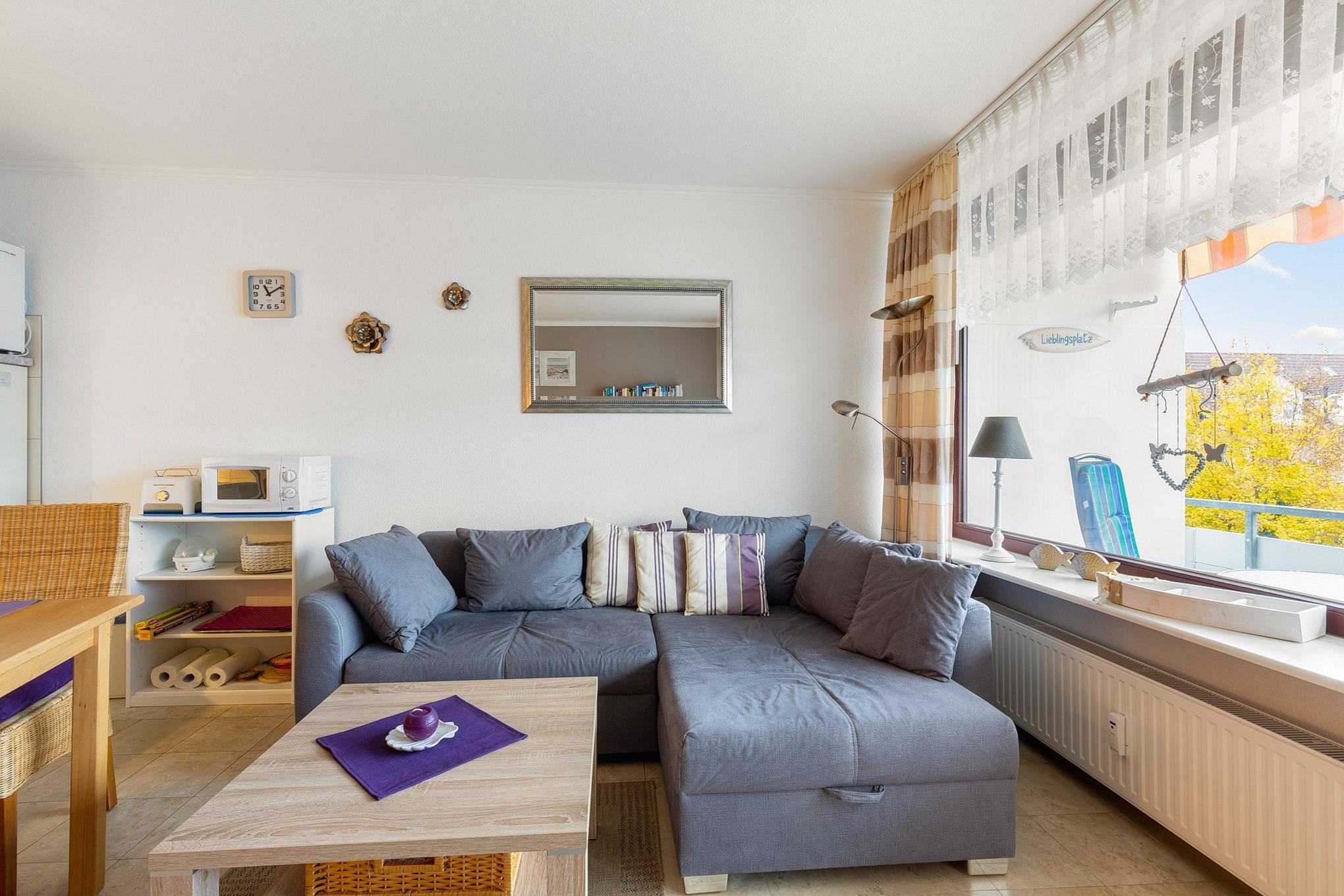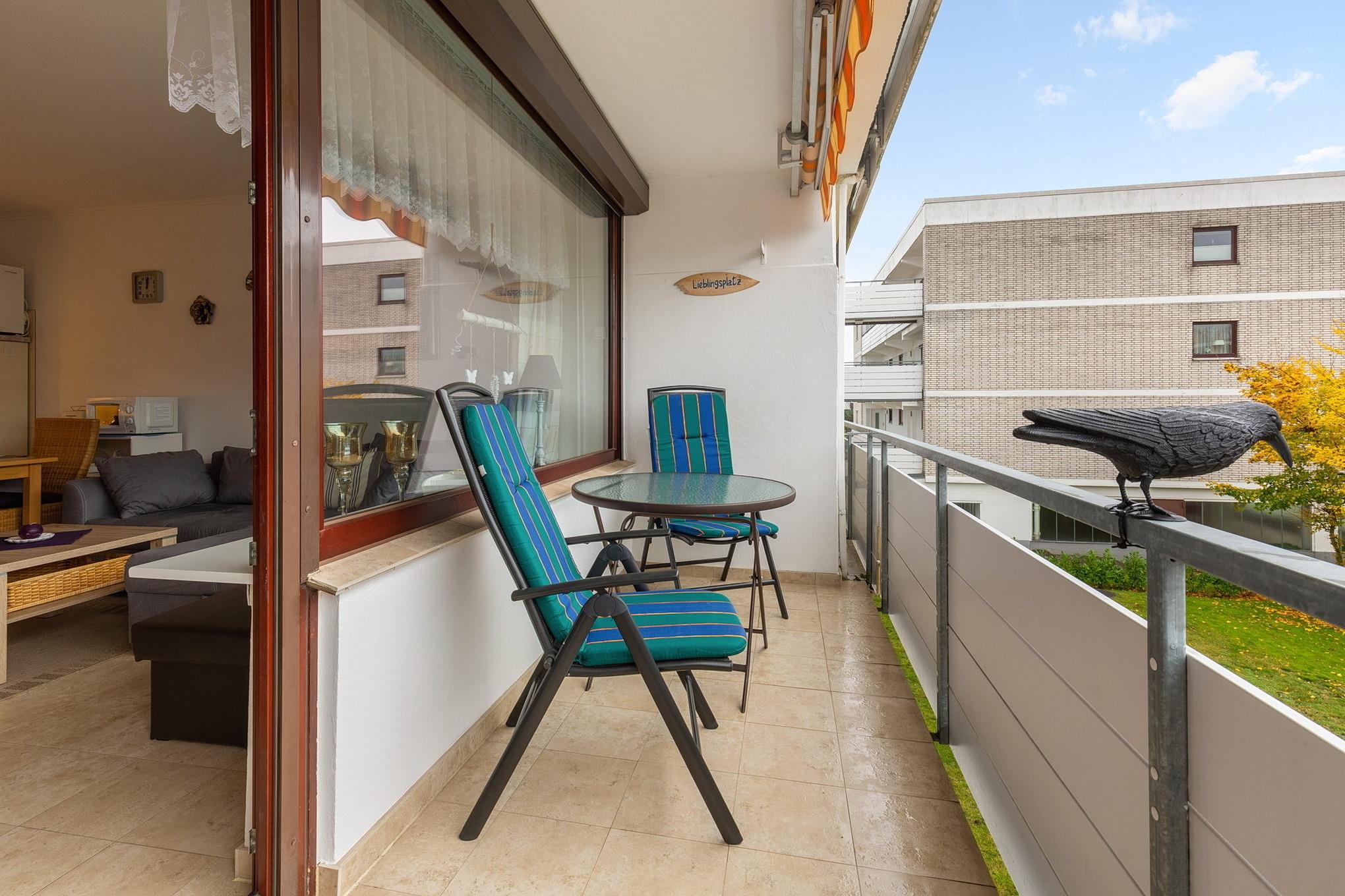 Moderne Ferienwohnung mit Balkon und zentraler Lage in Grömitz, nur wenige Gehminuten vom Strand entfernt.