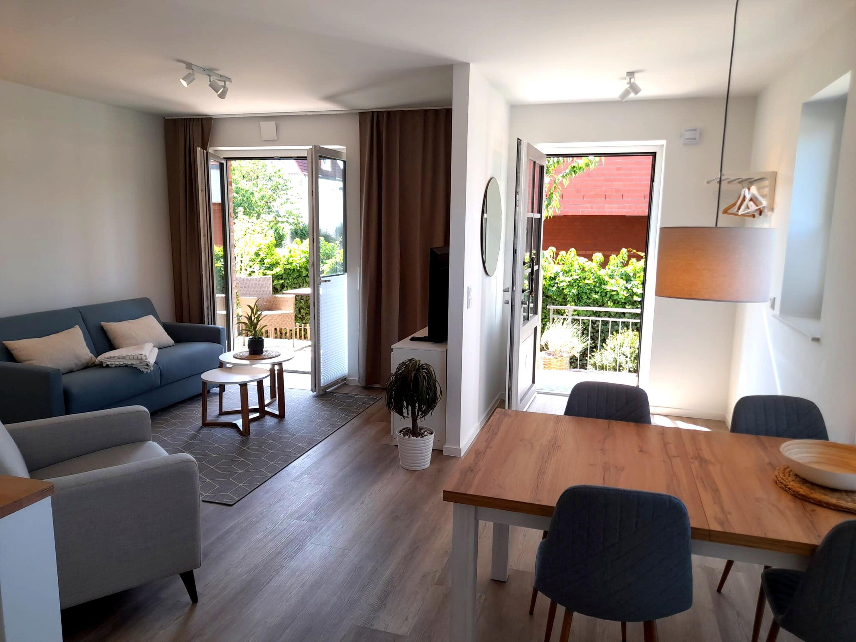 Ein besonderes Highlight ist die Sauna, die den Gästen zur Verfügung steht. Die offene Wohnküche lädt zum gemeinsamen Kochen und Essen ein. Auf der Terrasse können Sie die frische Luft genießen.