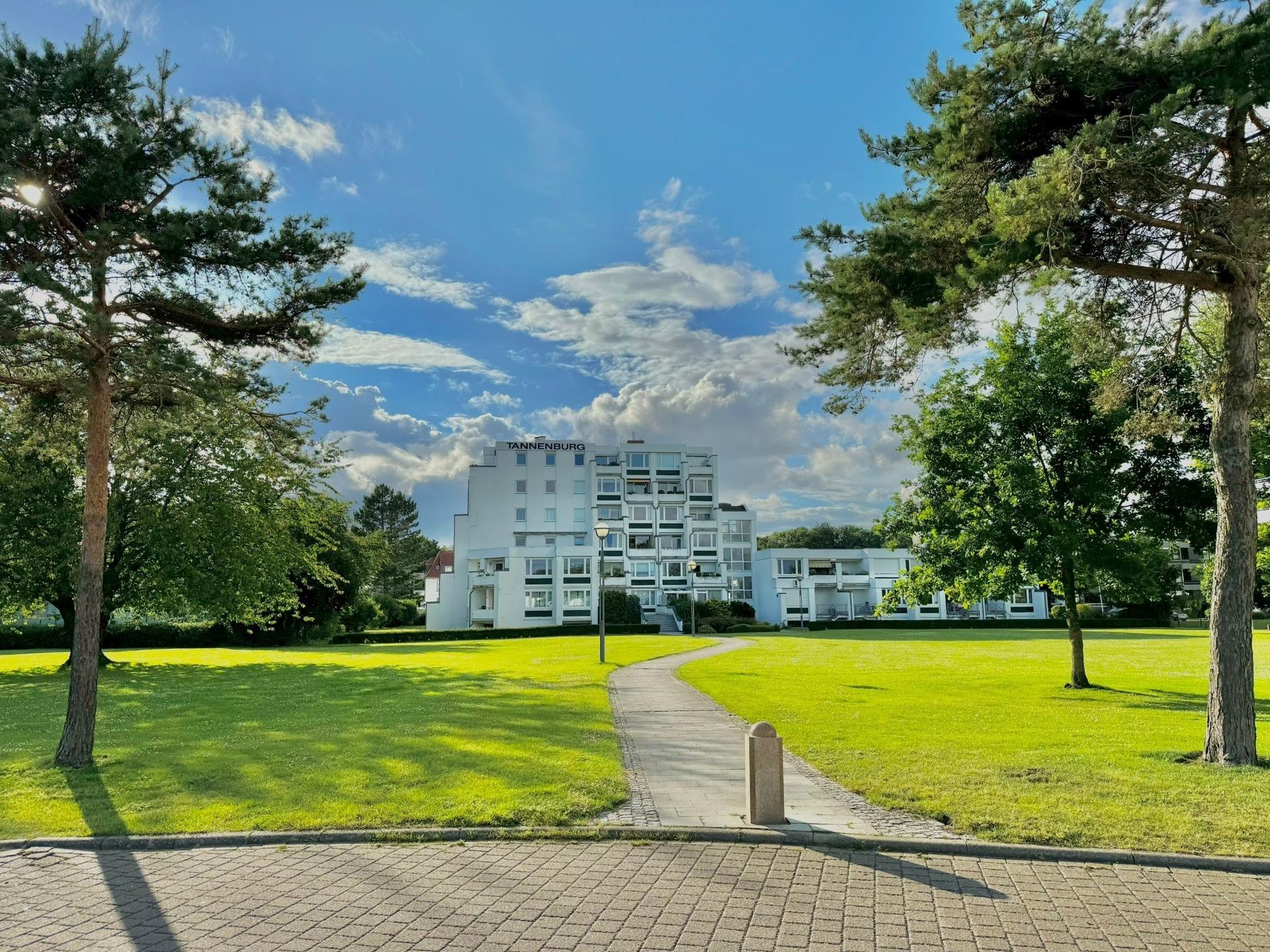 Der Sandstrand wird nur durch eine etwa 120 Meter breite Grünanlage von der Ferienanlage "Tannenburg" getrennt. Am Strand entlang erstreckt sich die über 3 km lange Promenade, die mit vielen Restaurants, Cafés und Boutiquen zum Bummel einlädt.