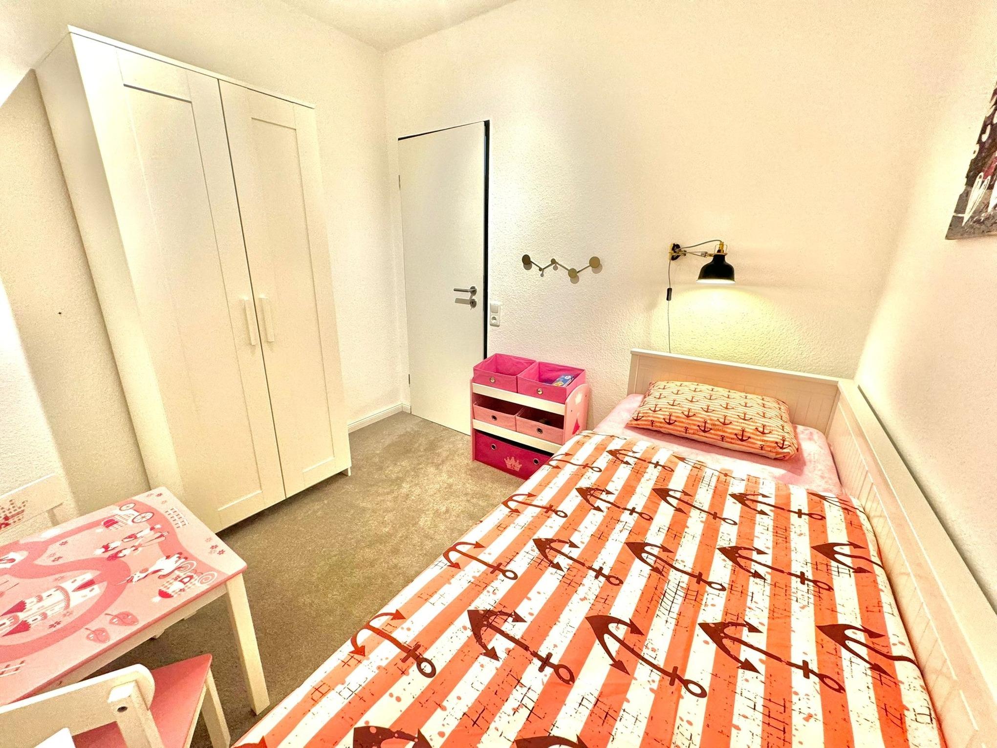 Im Jahr 2024 renoviert, verfügt die Wohnung über eine moderne und voll ausgestattete Küche, die keine Wünsche offenlässt. Das Badezimmer ist mit WC, Dusche und Waschbecken ausgestattet. Das behagliche Schlafzimmer bietet ein komfortables Boxspring-Doppelbett, Verdunklungsvorhänge, einen Flachbildfernseher und einen großzügigen, modernen Kleiderschrank. Das separate Kinderzimmer ist mit einem Bett (von einem Einzel- zu einem Doppelbett ausziehbar), Maltisch und Kleiderschrank eingerichtet. Auch ein Babybettreisebett und Kinderstuhl stehen in der Wohnung zur Verfügung.