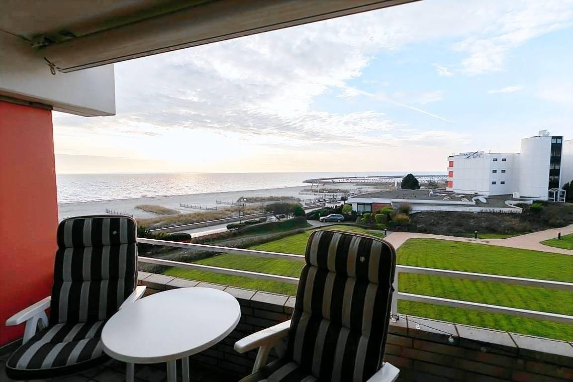 Komfortable 2-Zimmer-Ferienwohnung in Grömitz mit großem Südbalkon und traumhaftem Seeblick, nahe dem Ostseestrand.