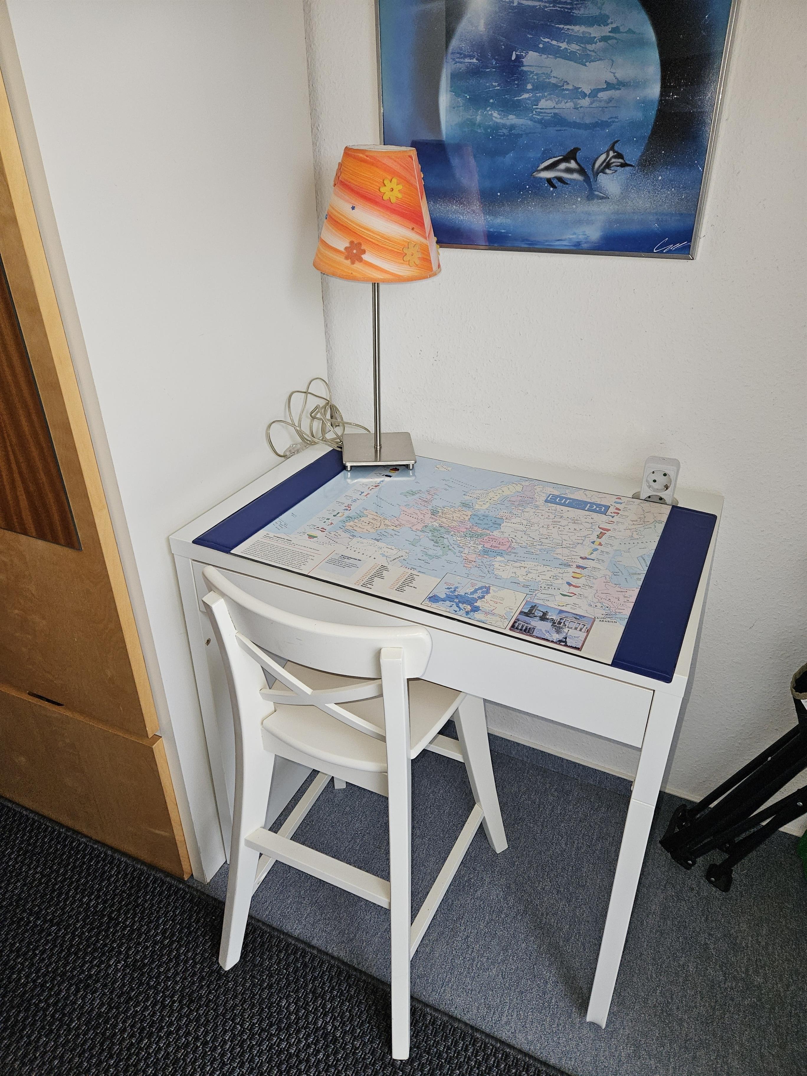 Die Wohnung besteht aus einem Wohnzimmer mit Kabel-TV mit DVD-Player, Videorecorder und Stereoanlage, einer Kochnische u. a. mit einem 2er Ceranfeld, einem Miniofen und einem Essbereich. Es sind 2 Schlafzimmer vorhanden, das Elterschlafzimmer verfügt über ein Doppelbett (1,60 m breit) und wandhängendem Kabel-TV und im Kinderzimmer steht ein Etagenbett und es sind einige Spielsachen vorhanden. Im Badezimmer befindet sich eine Dusche mit WC - (ein Kindertoilettensitz ist vorhanden). Der Wohnbereich ist mit Laminat ausgelegt, die Schlafzimmer mit Teppichboden.