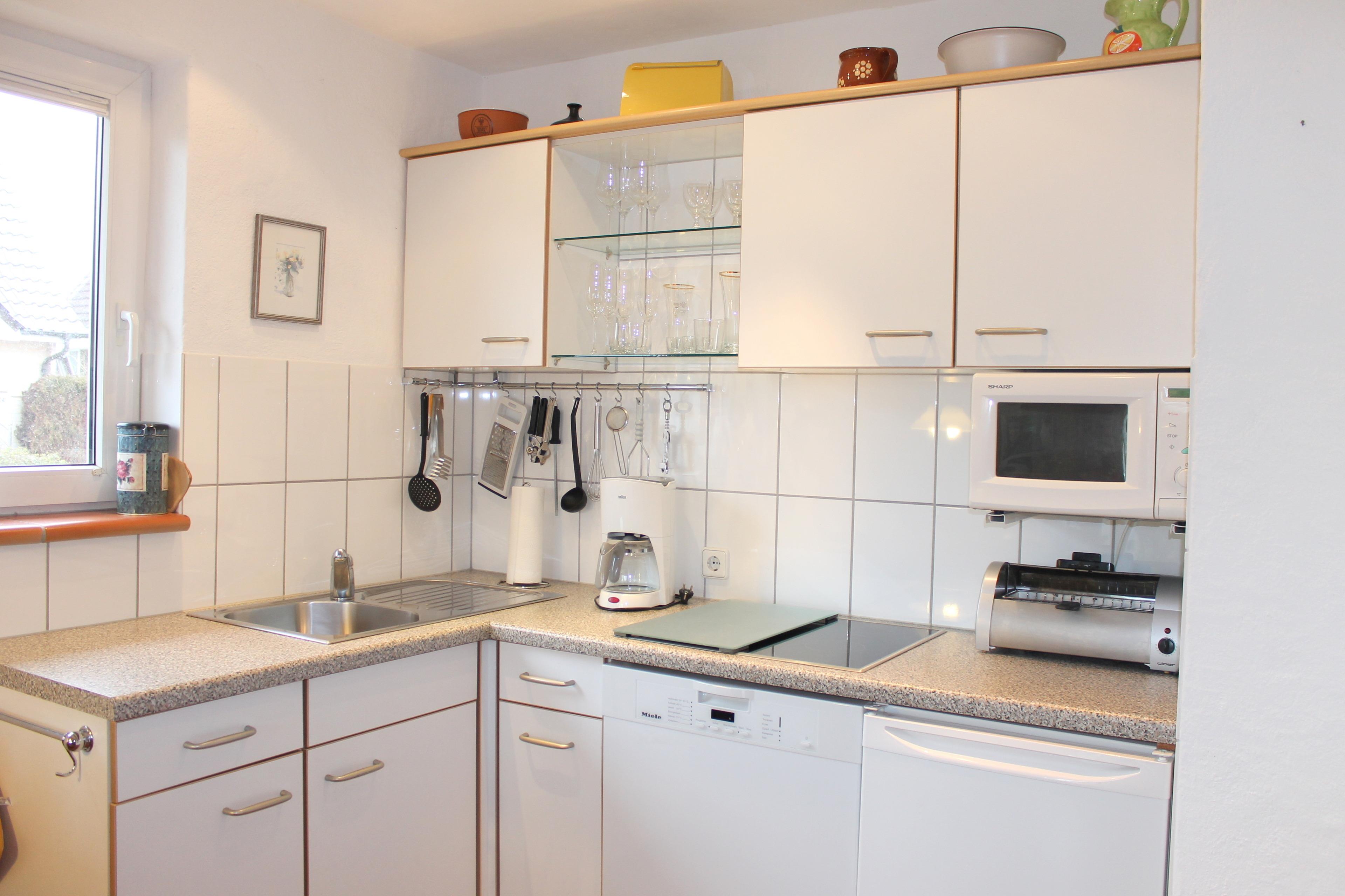 Die Wohnfläche der ca. 60 m² großen Ferienunterkunft verteilt sich auf ein Wohn- / Esszimmer, zwei separate Schlafzimmer, einen Flur sowie auf ein Badezimmer. Der Wohnraum ist mit einer gemütlichen Sitzecke, TV, Stereoanlage mit CD-Player sowie mit einer offenen Küche versehen. Die Küchenzeile ist u. a. mit einer Mikrowelle, einer Geschirrspülmaschine, einer Kaffeemaschine und weiteren Küchengeräten ausgestattet, ein Essplatz ist vorhanden. Von hier aus haben Sie Zugang zur möblierten Terrasse und zum Garten. Der große Garten steht allen Gästen zur Verfügung. Vom Flur aus gelangen Sie in die beiden Schlafzimmer. Eins ist mit einem Doppelbett (Maße: 1,80 x 2,00 - getrennte Matratzen), einem Kleiderschrank, einer Kommode sowie einem Waschplatz versehen, das zweite verfügt über zwei Einzelbetten, einen Kleiderschrank, TV und auch eine Sitzecke ist vorhanden. Das Tageslicht-Badezimmer ist mit Dusche/WC ausgestattet. Die Fenster in den Schlafzimmern sind mit Außenjalousien ausgestattet.