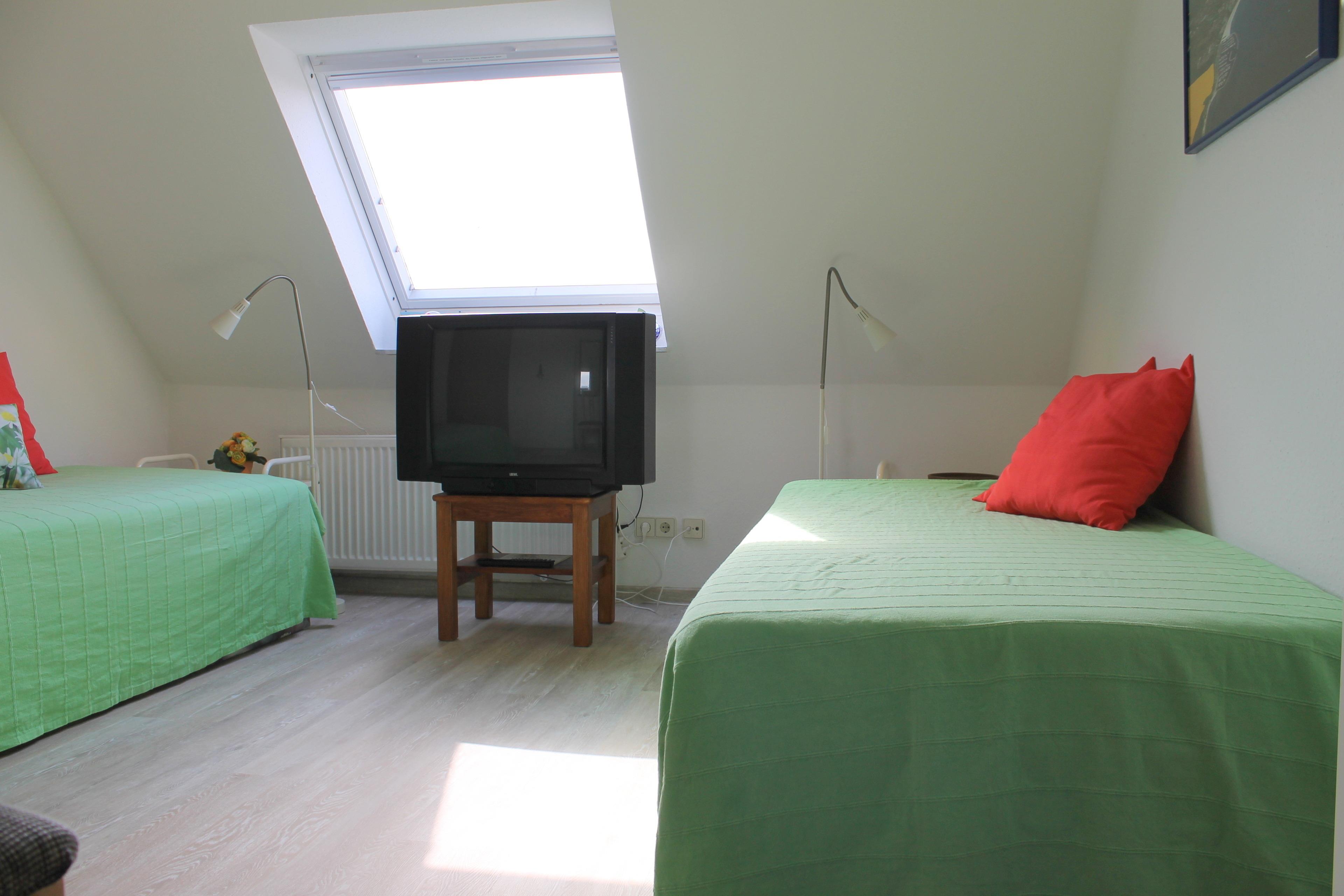 Das Appartement "Nr. 2" im "Haus Frohnau" liegt in der ersten Etage und bietet Platz für bis zu fünf Personen. Die Wohnfläche der ca. 42 m² großen Unterkunft verteilt sich auf einen Wohn- / Schlafraum mit offener Küche, ein separates Schlafzimmer, ein Badezimmer sowie ein Gäste-WC. Der Wohnbereich ist mit einer gemütlichen Sitzecke, einem Doppelbett (1,80 x 2 m) sowie einer offenen Küche versehen. Die Küchenzeile ist u.a. mit Ceranfeldherd, Backofen, Geschirrspülmaschine, einem großen Kühlschrank und Gefrierschrank sowie einem Essplatz ausgestattet. Das Tageslicht-Badezimmer ist mit Dusche/WC und Waschtisch ausgestattet, zusätzlich gibt es ein Gäste-WC.