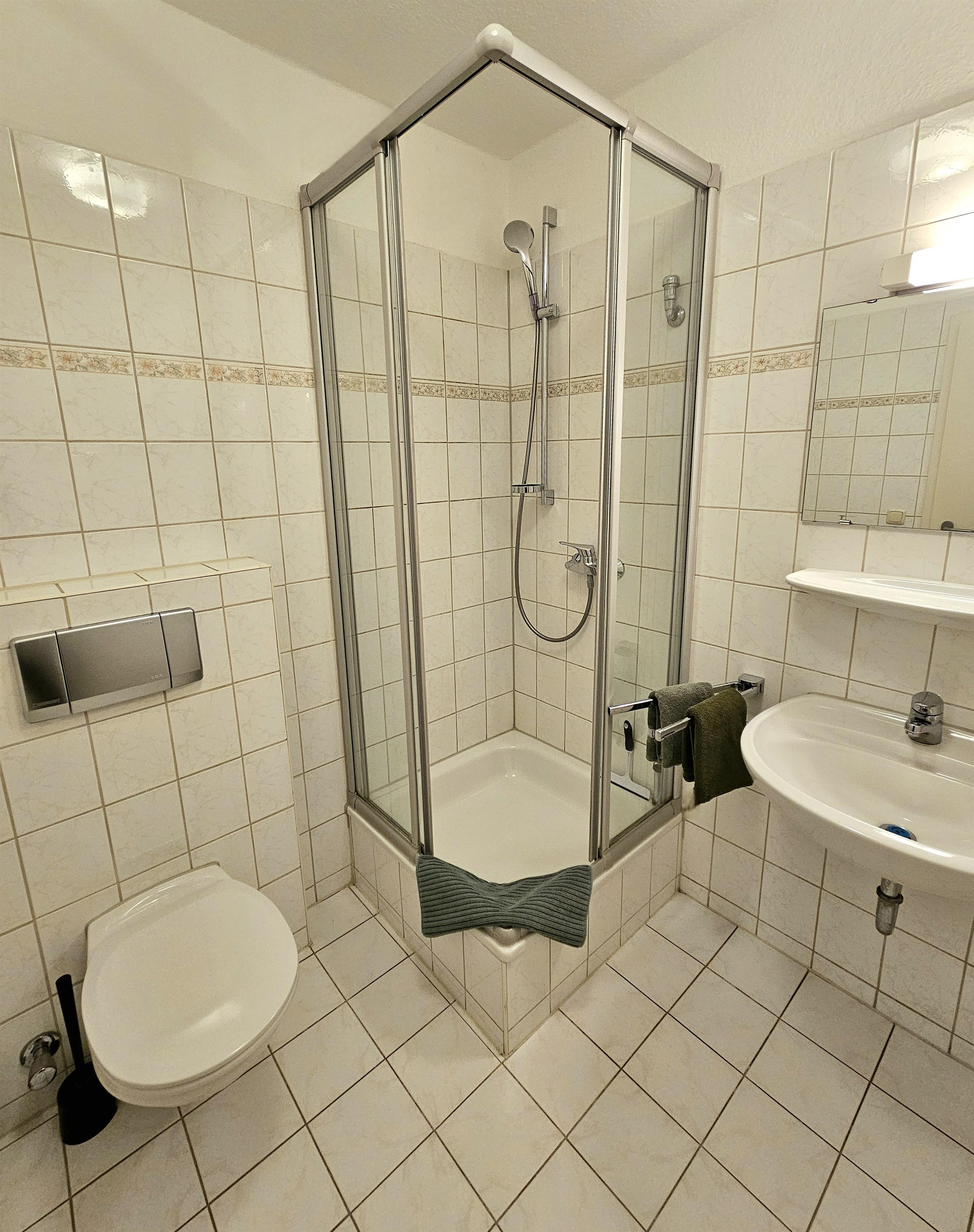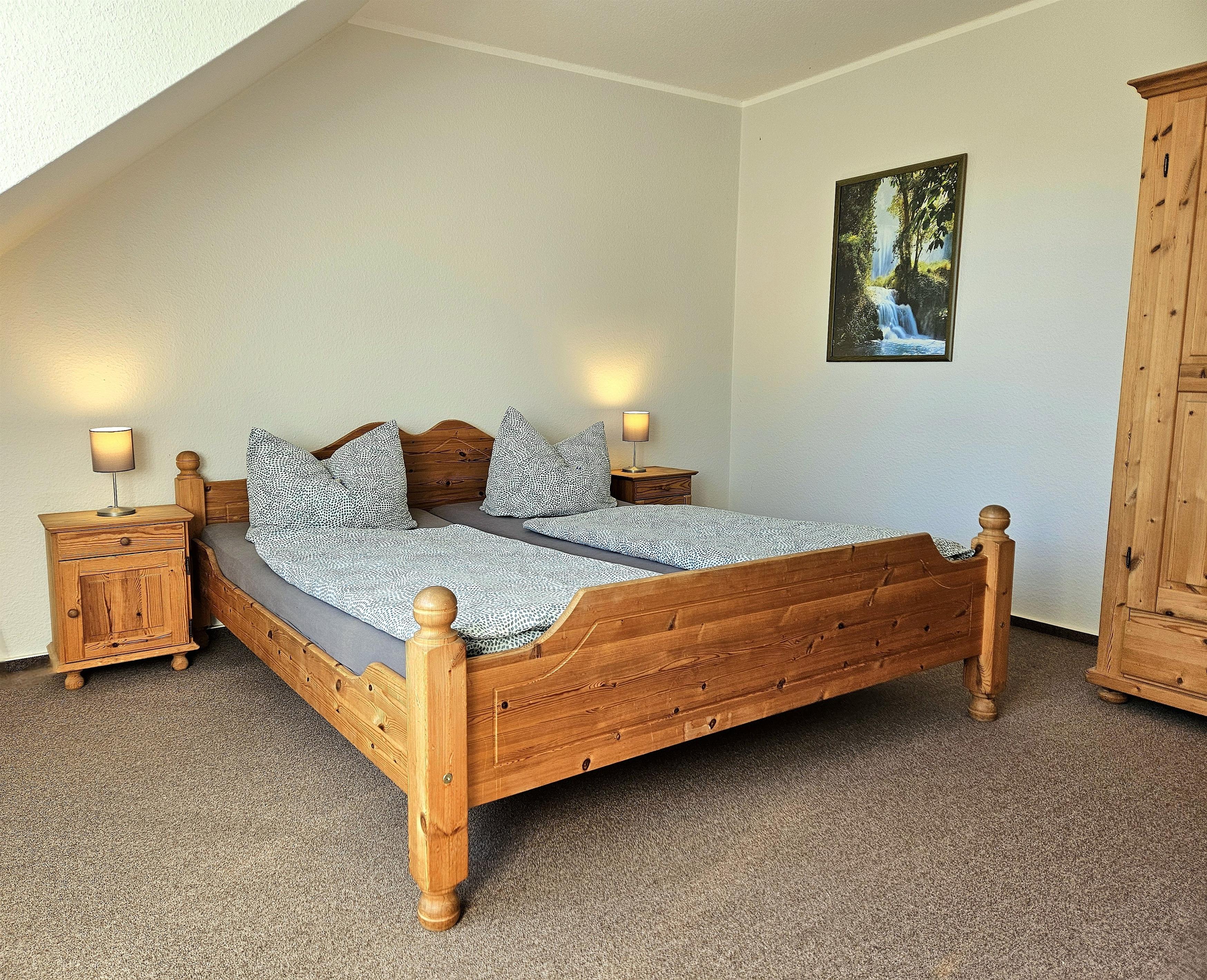 Die Wohnung "Nr. 9" auf dem "Grömitzer Pappelhof" liegt in der 1. Etage und bietet Platz für bis zu 4 Personen. Die Wohnfläche der ca. 60 m² großen Ferienunterkunft verteilt sich auf ein Wohn- / Esszimmer, ein separates Schlafzimmer, einen Flur mit zwei Schlafgelegenheiten und auf ein Badezimmer. Das Wohn- / Esszimmer ist mit einer gemütlichen Sitzecke, Flachbild-TV, einem Esstisch und einer offenen Küchenzeile versehen. Die Küche ist u.a. mit 4-Plattenherd, Kaffeemaschine und weiteren Küchengeräten versehen. Das Schlafzimmer ist mit einem Doppelbett (getrennte Matratzen - Maße 0,90 x 2,00 m) und einem großen Kleiderschrank versehen. Im Flur befinden sich zwei Einzelbetten (0,90 x 2,00 m). Das Badezimmer ist mit WC und Dusche versehen.