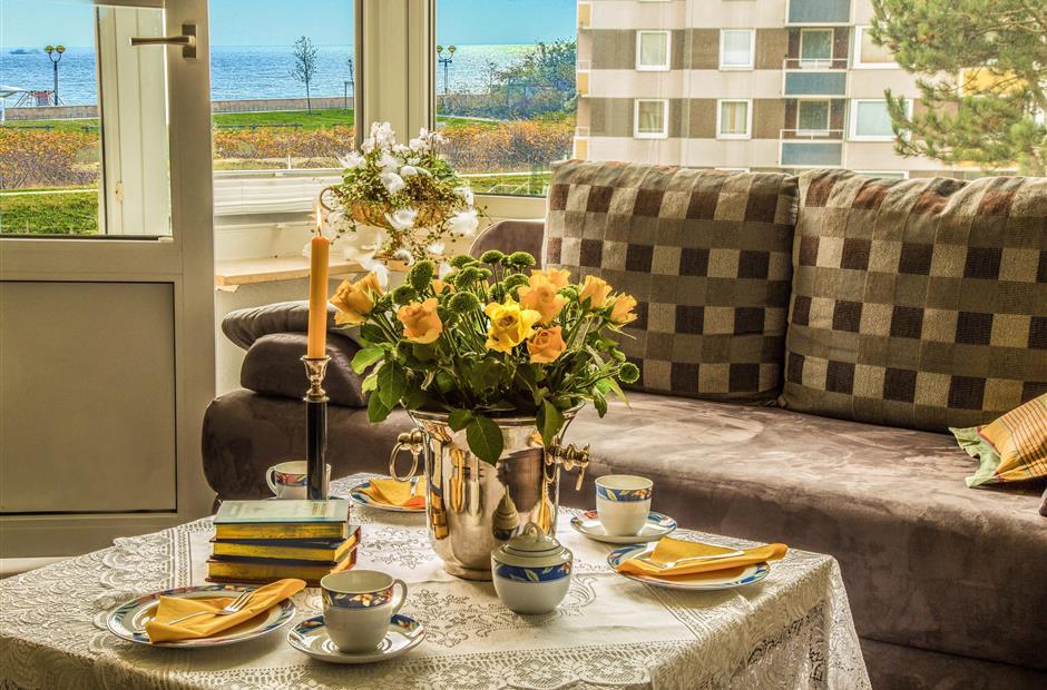 Gemütliche Ferienwohnung in Grömitz mit Seeblick und nur 100 Meter zum Strand, ideal für entspannte Tage an der Ostsee.