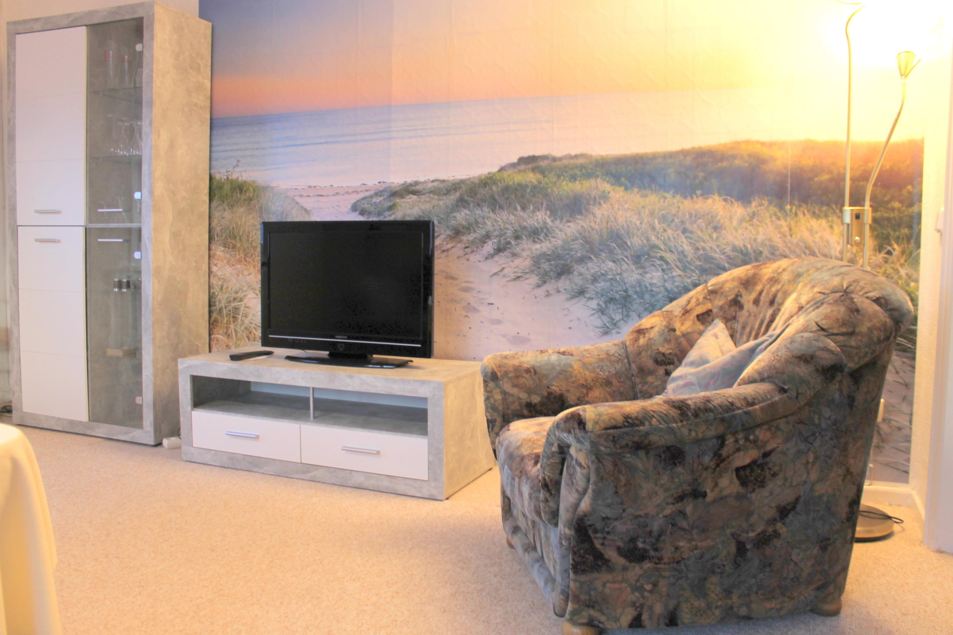 Die Wohnfläche der ca. 60 m² großen Unterkunft verteilt sich auf ein großes Wohn- / Esszimmer, ein Schlafzimmer sowie auf eine Küche, ein Badezimmer und ein Gäste-WC. Das Wohn- / Esszimmer ist mit einer gemütlichen Couchgarnitur, einem TV, einem Kamin sowie einem Essplatz versehen. Das Schlafzimmer ist mit einem Doppelbett (1,80 x 2), einem Klappbett (80x2), einem Schlafsessel (80x2) sowie einem großen Kleiderschrank versehen. Die Küche ist u. a. mit 4er Ceranfeldherd, Backofen, Geschirrspülmaschine, Mikrowelle und Wasserkocher ausgestattet. Von der Küche aus hat man Zugang zur geschützten und überdachten, möblierten Terrasse und zum Garten. Neue Echtholz-Gartenmöbel mit Auflagen sind vorhanden. Das Tageslicht-Badezimmer ist mit Dusche, WC und Fön versehen. Zudem gibt es ein Tageslicht-Gäste-WC, dieses befindet sich im Eingangsflur.
