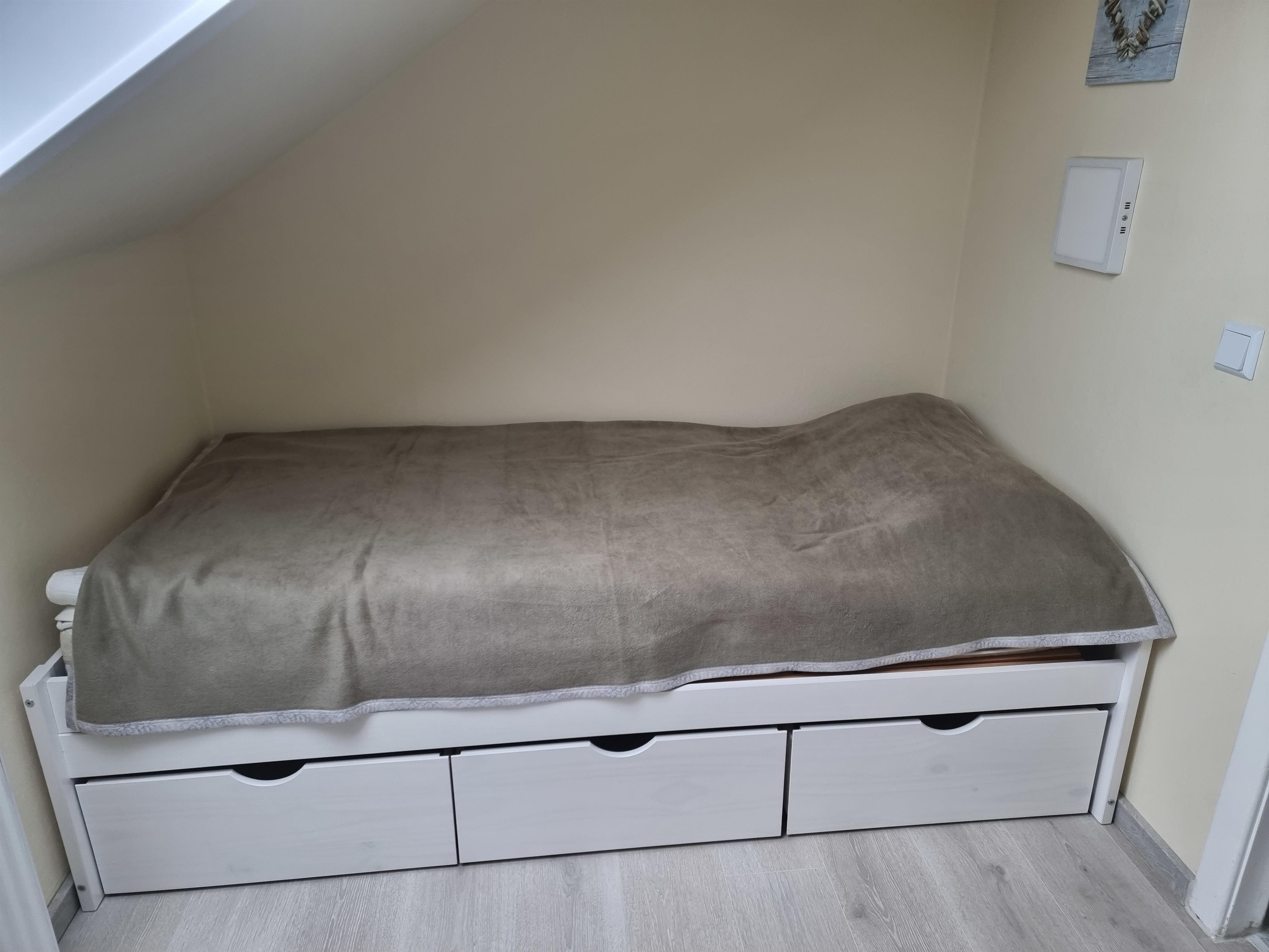Die Wohnung verfügt über ein Wohnzimmer mit Balkon und Sat-TV, sowie eine separate Küche mit Geschirrspülmaschine und Ceranfeld. Es gibt eine Schlafnische mit einem bequemen Doppelbett (1,80 x 2,00 m) und zwei kleine Einzelzimmer mit jeweils einem Einzelbett (0,90 x 1,90 m). Der Garten hinter dem Haus steht den Gästen aus dem Obergeschoss zur Verfügung . Hier können Sie die warmen Sommerabende genießen.