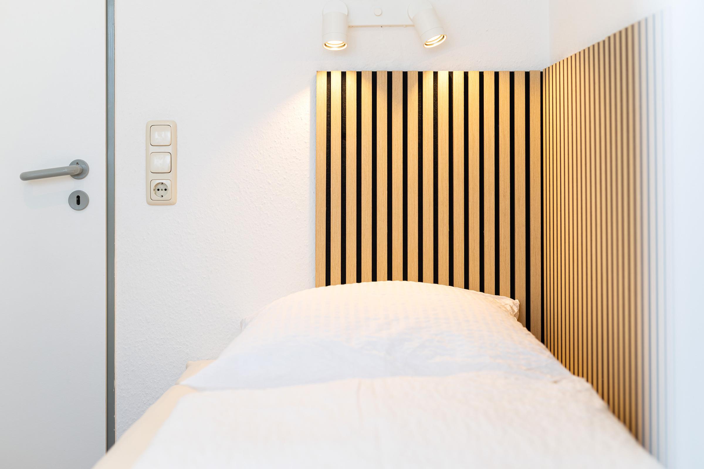 Das 3. Schlafzimmer hat zwei Boxspring-Einzelbetten (je 90 x 200 cm) mit einem Kleiderschrank von 100 cm.
