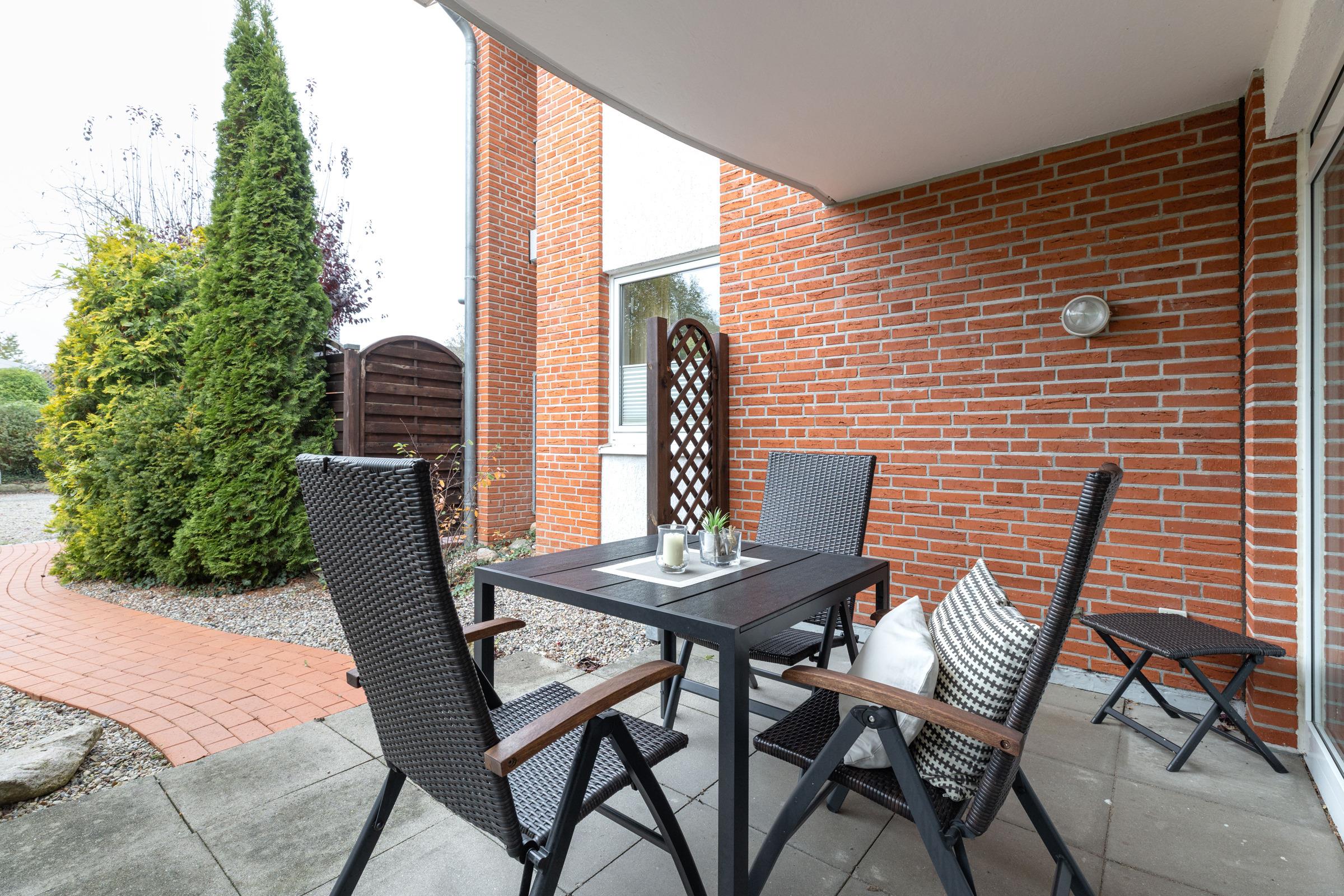 Modernes Apartment in Grömitz mit großer Sonnenterrasse, nur 200 m vom Strand entfernt, ideal zum Entspannen und Wohlfühlen.
