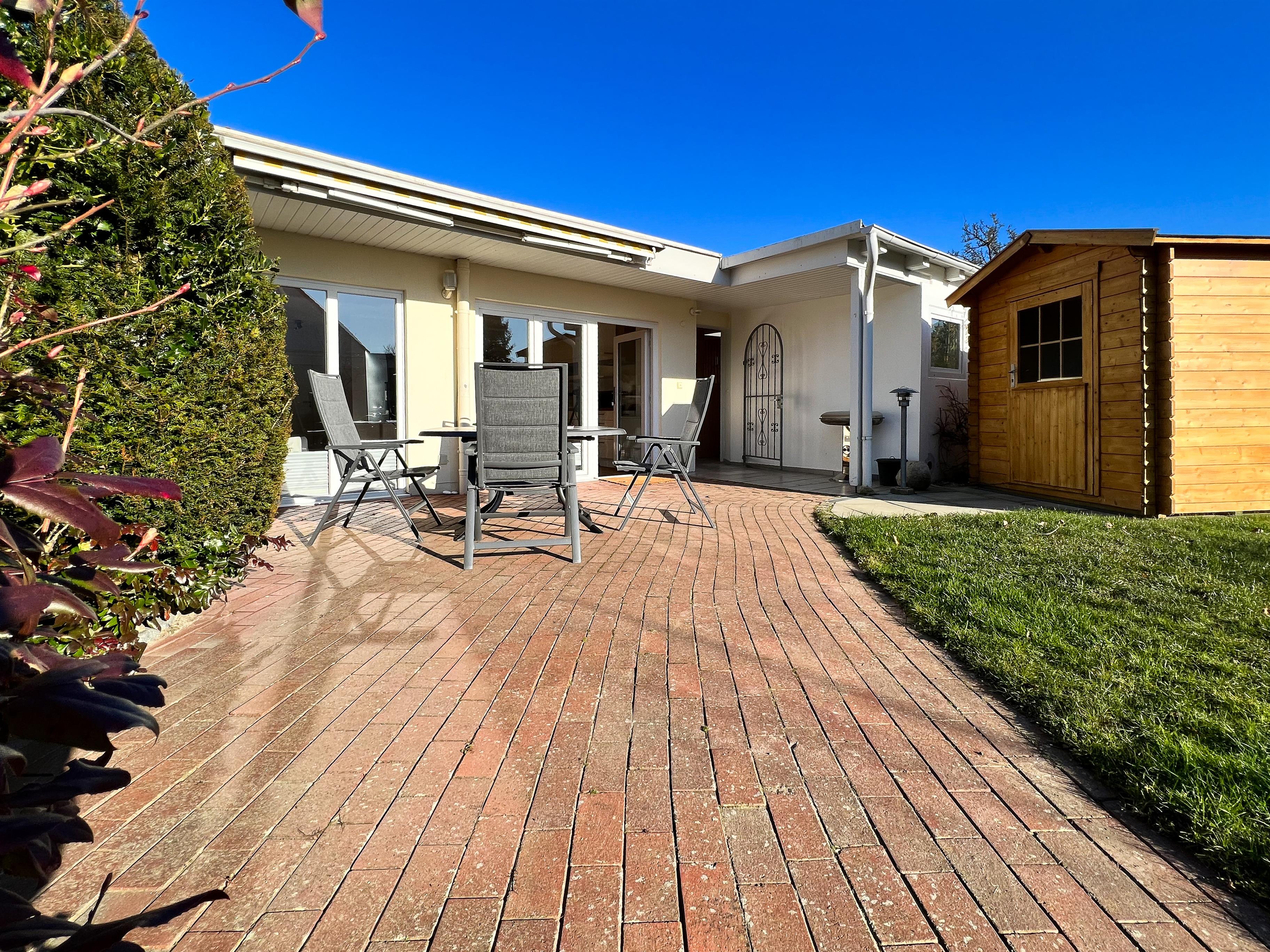 Moderner Komfort-Bungalow in Grömitz mit Garten, Terrasse, Carport und strandnaher Lage direkt am Deich.