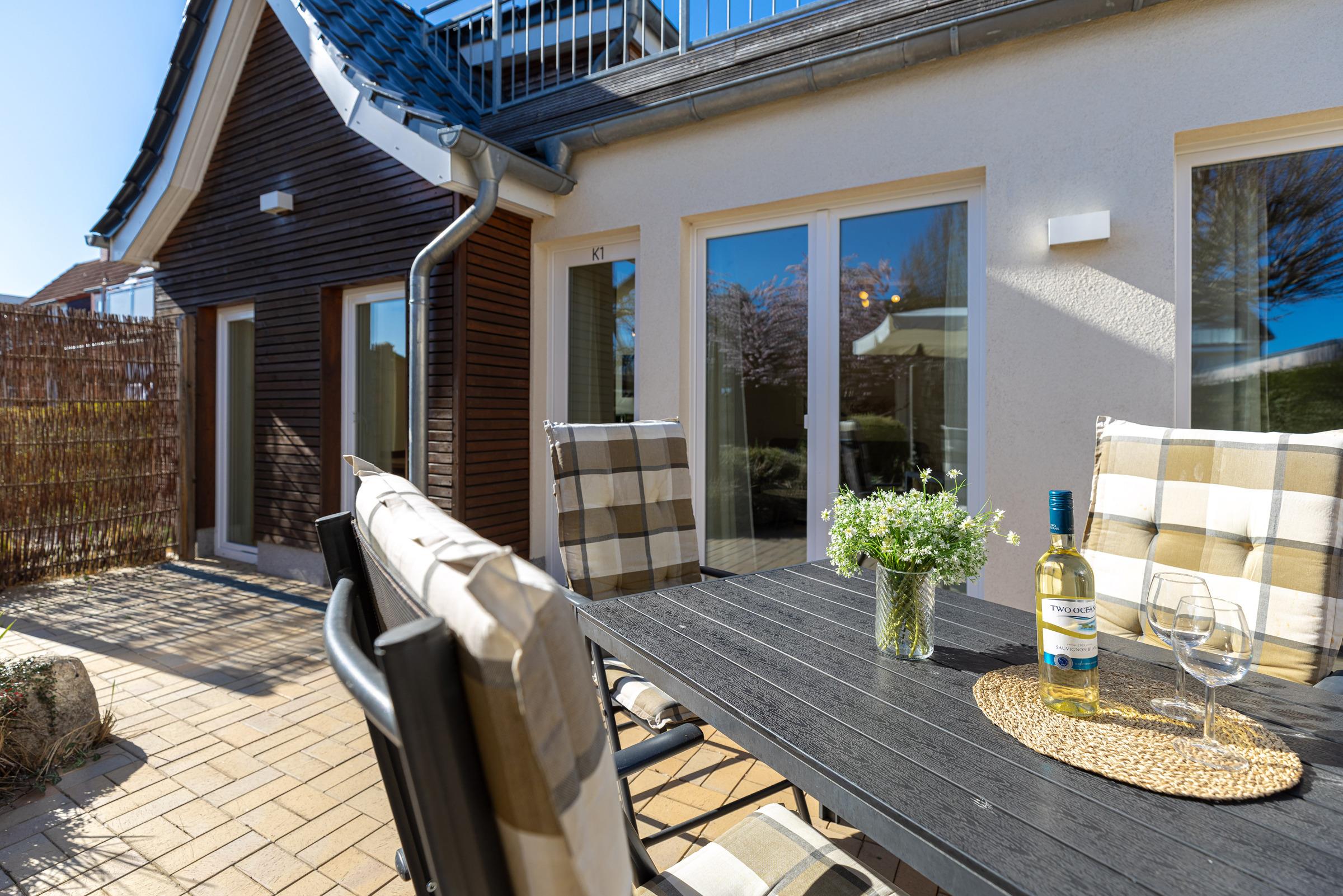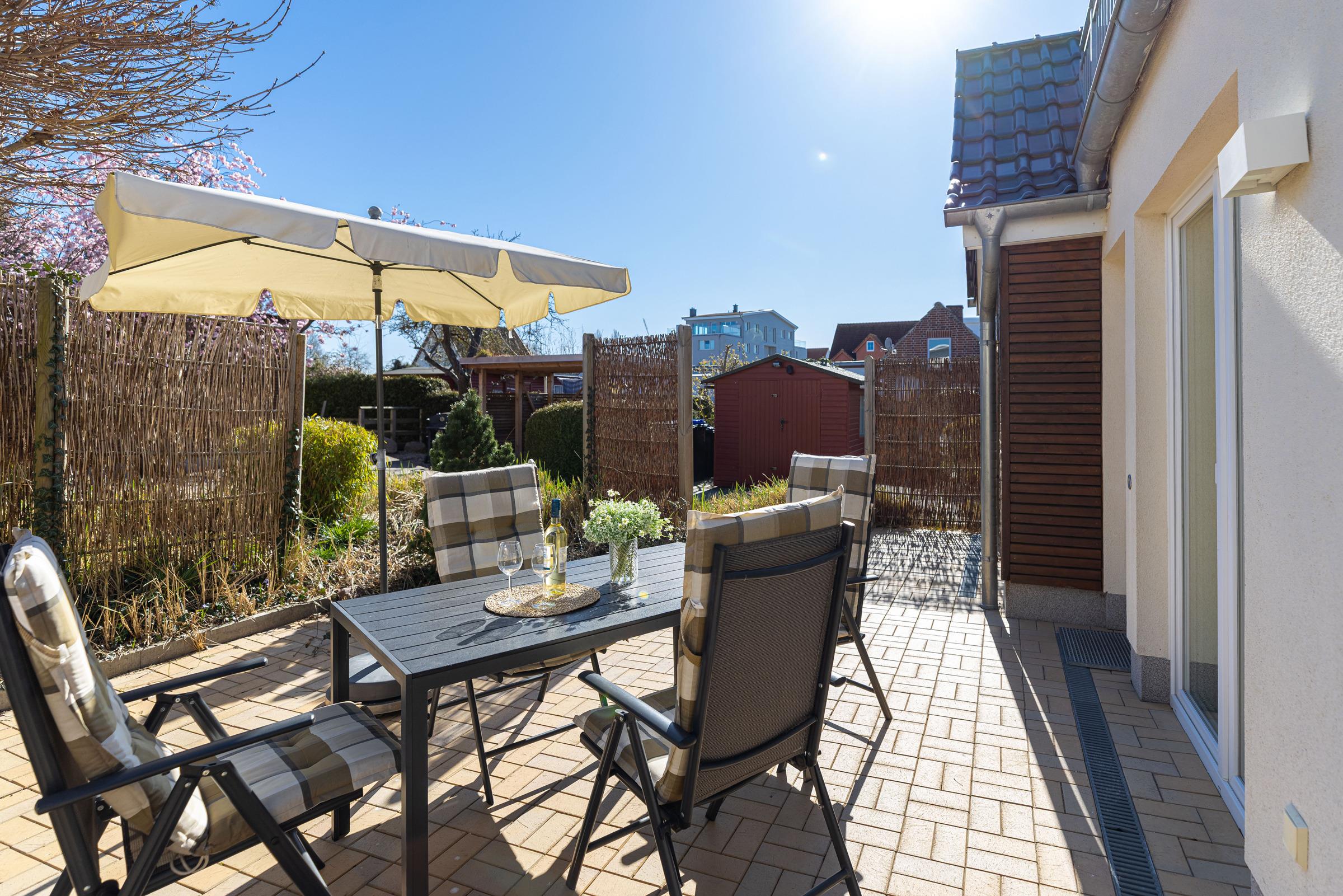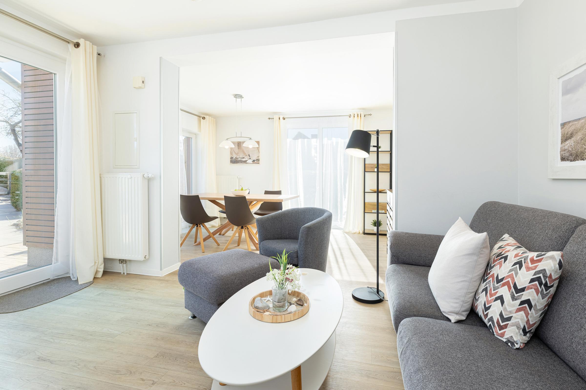 Modernes Komfort-Apartment nahe Hauptstrand in Grömitz mit zwei Schlafzimmern und Terrasse.