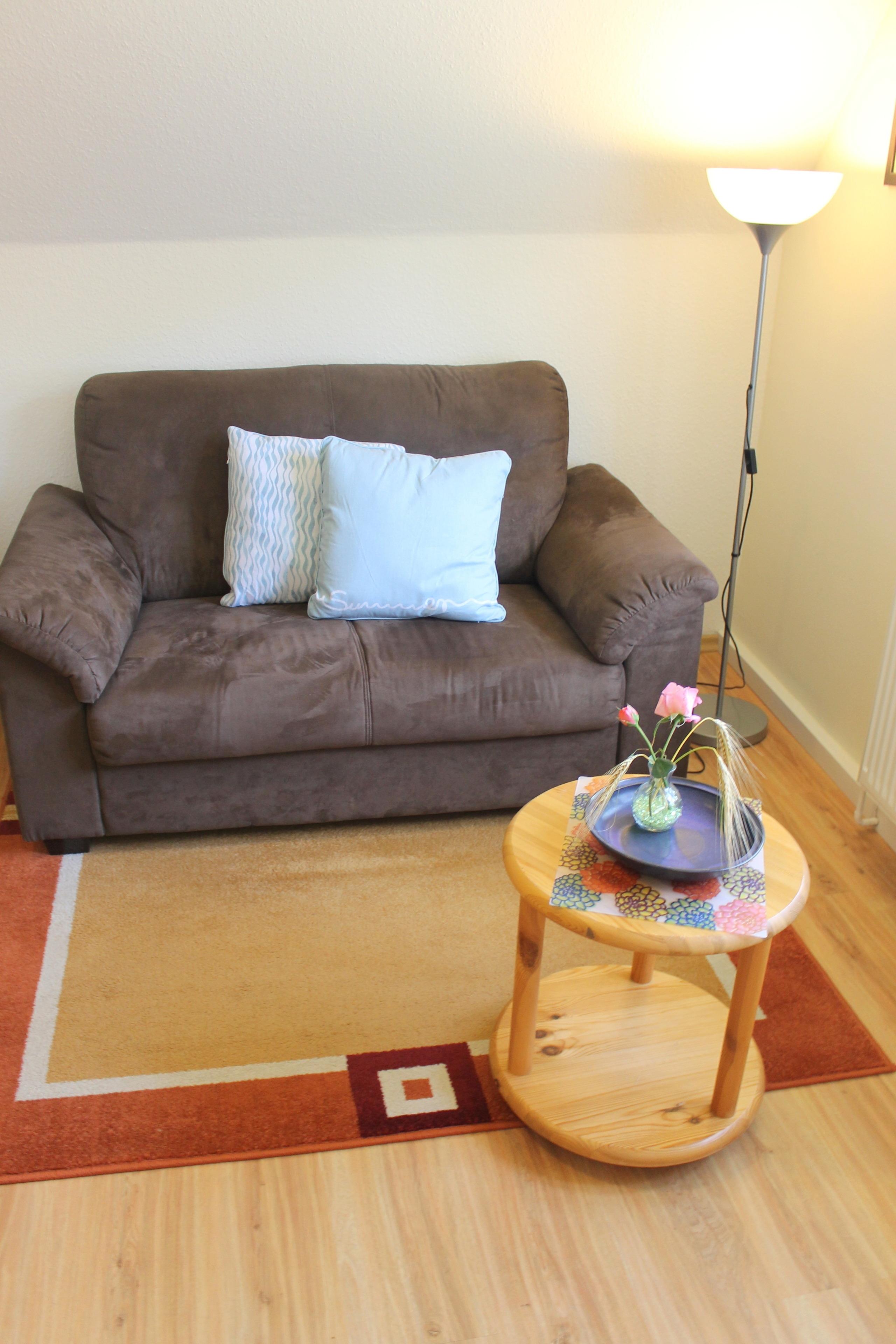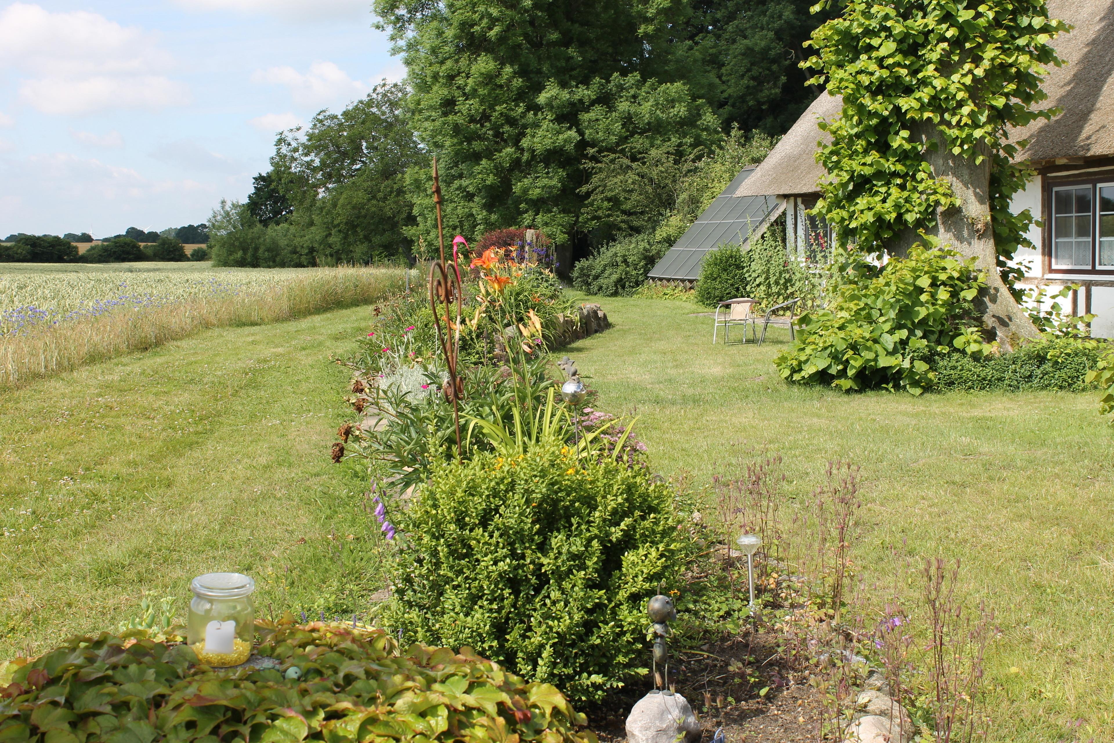 Die Wohnfläche des ca. 40 m² großen Appartements verteilt sich auf ein Wohn-/ Esszimmer mit offener Küchenzeile, ein separates Schlafzimmer sowie auf einen Flur, ein Badezimmer und auf ein Gäste-WC. Das Wohn-/ Esszimmer ist mit einer gemütlichen Sitzecke, Büchern, Gesellschaftsspielen sowie einem Essplatz versehen. Die offene Küche ist u.a. mit: Geschirrspülmaschine, 2 Kochfeldern, Mixer, Toaster, Senseo-Pad-Kaffeemaschine und weiteren Küchengeräten ausgestattet. Vom Flur aus gelangen Sie in alle Räume. Das Schlafzimmer ist mit einem Doppelbett (getrennte Matratzen, Maße: 1,80 x 2,00 m), einem Einzelbett (Maße: 0,90 x 2,00 m), einem Kleiderschrank sowie mit einer Sitzmöglichkeit versehen, von hier aus gelangen Sie in das Badezimmer. Das Gäste-WC ist vom Flur aus erreichbar. Die Fenster sind mit Rollos verdunkelbar. Der weitläufige Garten mit Spielgeräten und schattigen Plätzen unter alten Bäumen darf gern von Ihnen mitgenutzt werden. Sitzgelegenheiten stehen hier für Sie zur Verfügung.