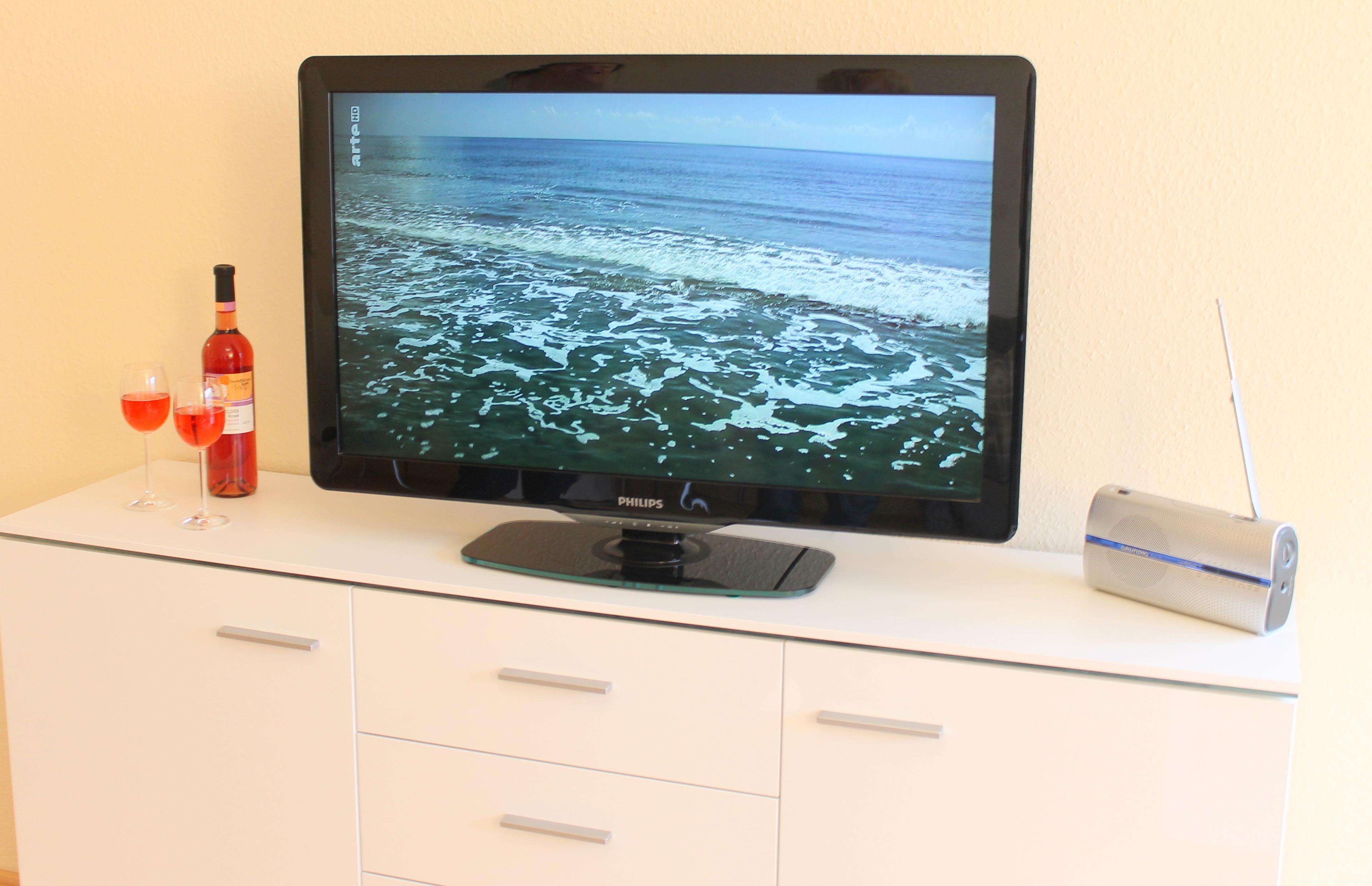 Die hochwertige Ausstattung dieser Ferienwohnung überzeugt: Der Wohnbereich mit Flat Screen TV ist mit einer bequemen, hochwertigen Schlafcouch (mit Matratze)ausgestattet. In der modernen Küche finden Sie eine Spülmaschine, Kaffeemaschine, Mikrowelle, Backofen, Wasserkocher und weitere Küchengeräte vor. Die gemütliche Essecke mit Platz für 4 Personen lädt zum ausgiebigen Frühstücken ein. Das separate Schlafzimmer ist mit einem Doppelbett (getrennte Matratzen 1,80 cm x 2 m) und einem großem Kleiderschrank ausgestattet. Fahrstuhl im Haus. Keine Haustiere erlaubt. Waschmaschine und Wäschetrockner gegen Gebühr im Haus. Bettwäsche ist inklusive, ein Handtuchpaket (1 großes Duschhandtuch + 2 kl. Handtücher) kann gemietet werden (s. Preisliste).