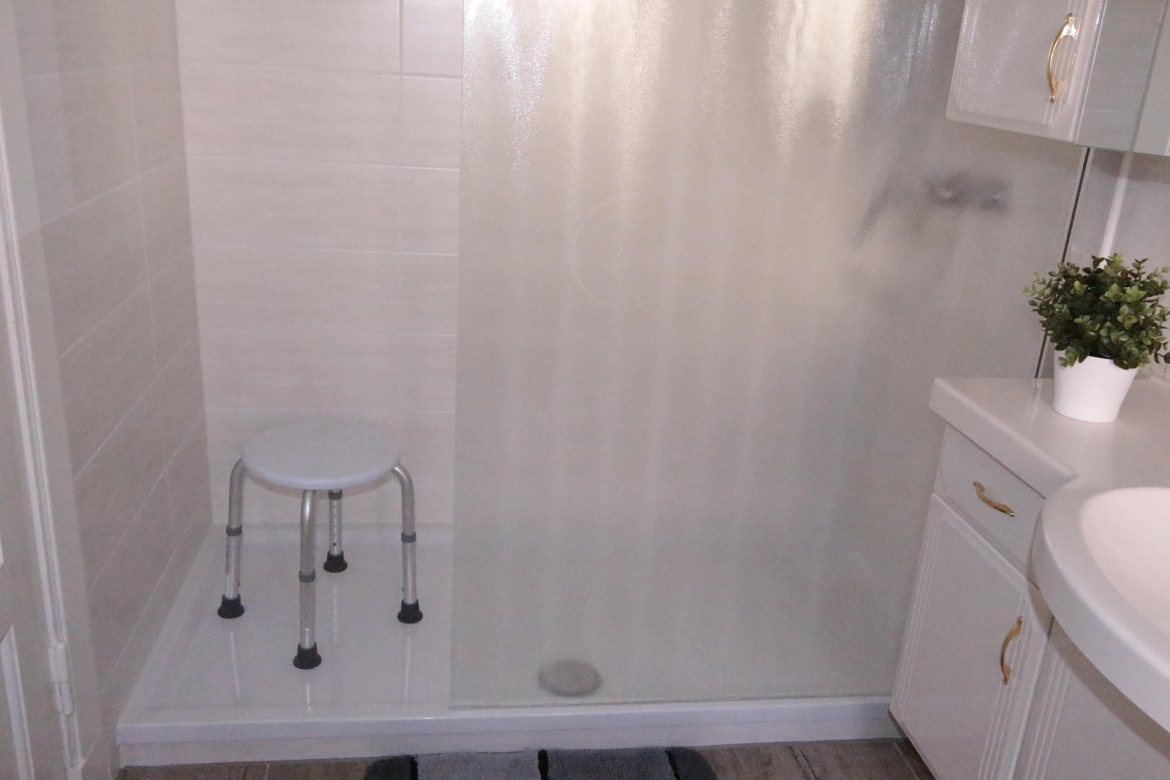 Geräumiges Bad, ebenerdige Dusche, WC.