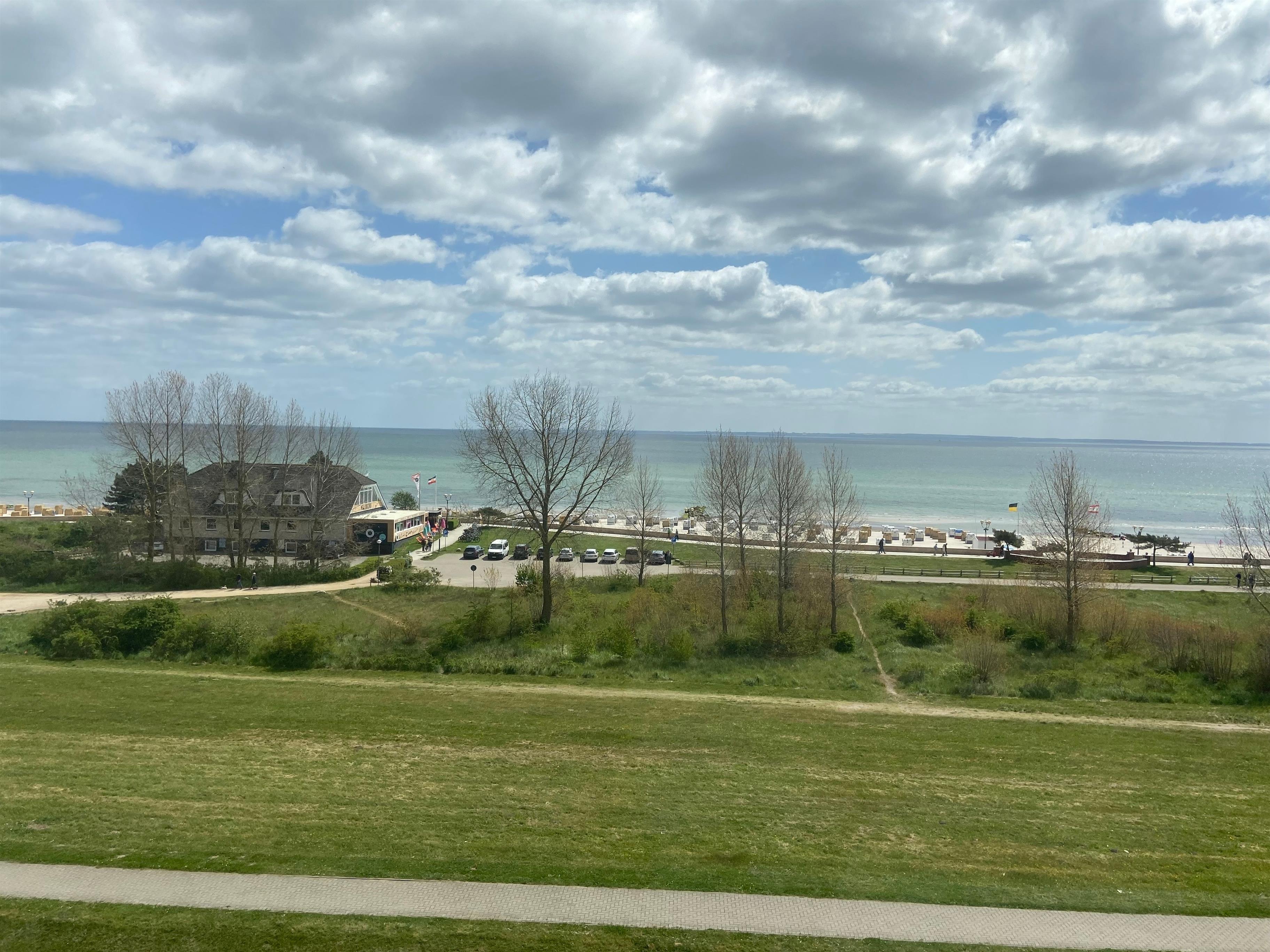 Moderne Ferienwohnung mit traumhaftem Meerblick und Balkon in Grömitz, nur wenige Schritte vom Strand entfernt.