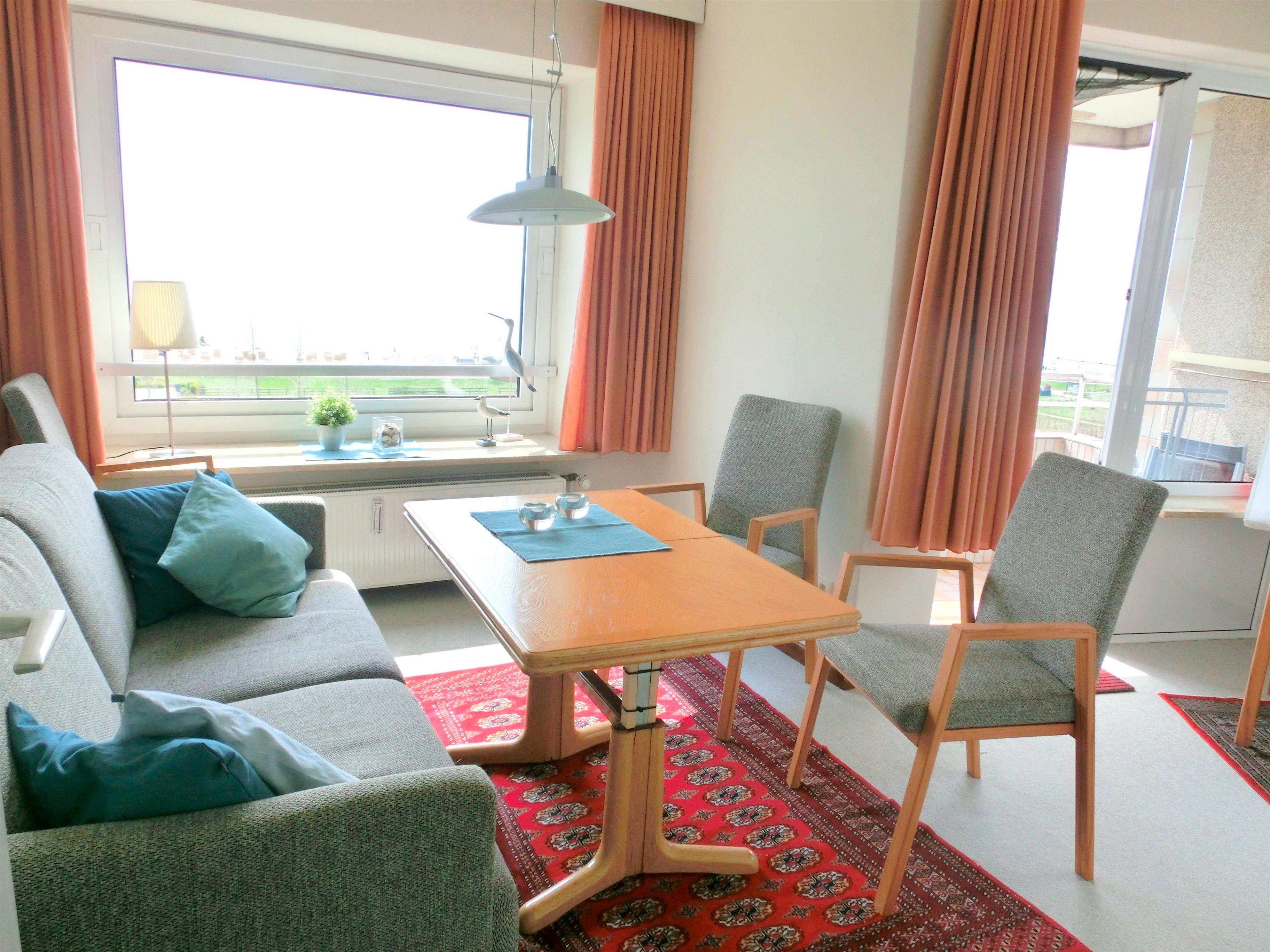 Die Wohnung liegt direkt am Deich, mit wenigen Schritten sind Sie am Strand oder können auf der Promenade spazieren gehen.