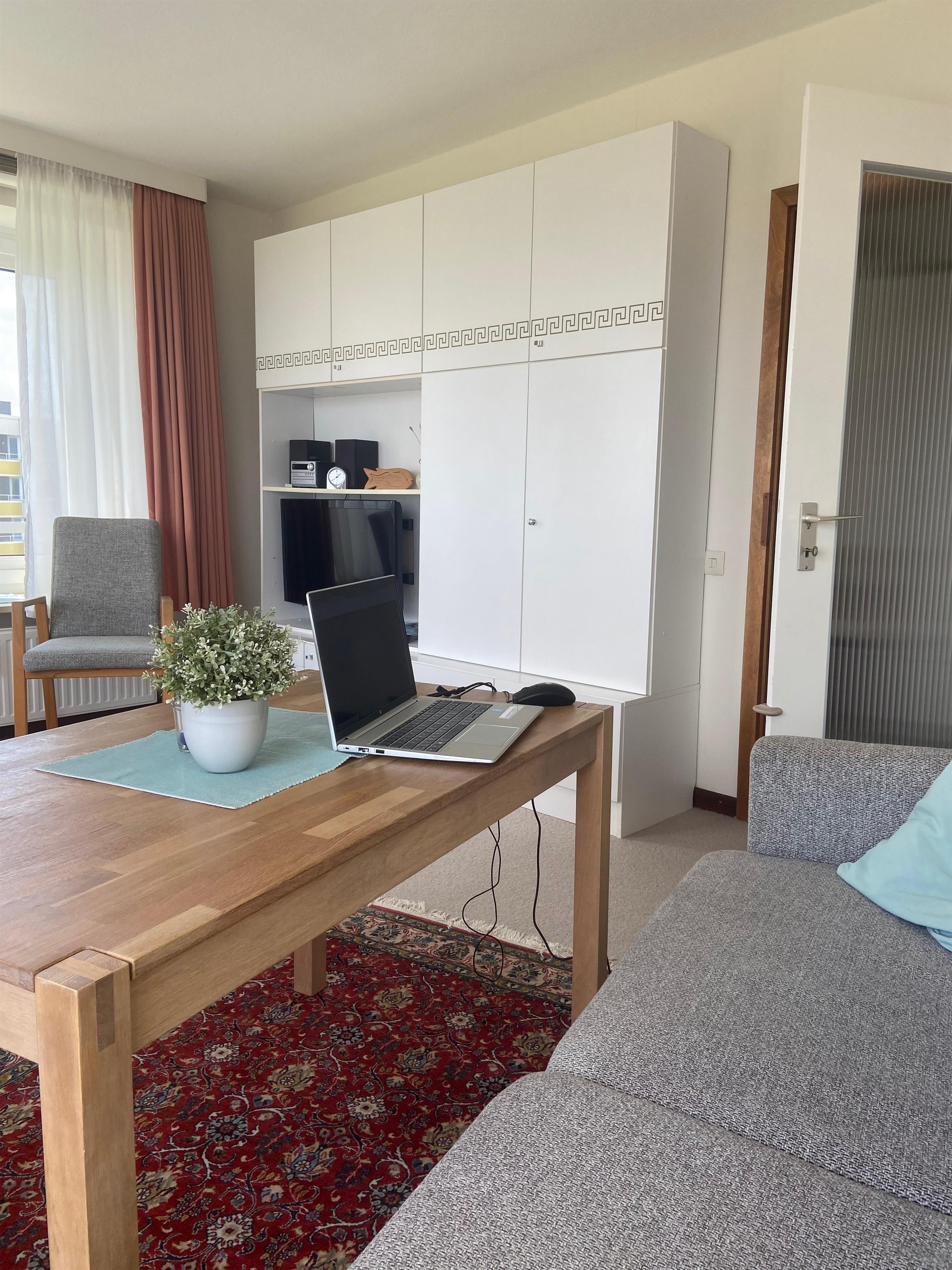 Die Wohnung besteht aus einem Wohnzimmer mit Kabel-TV, W-LAN, Musikanlage mit CD, USB, Blutooth. Der sonnige Balkon mit Seeblick ist möbliert.