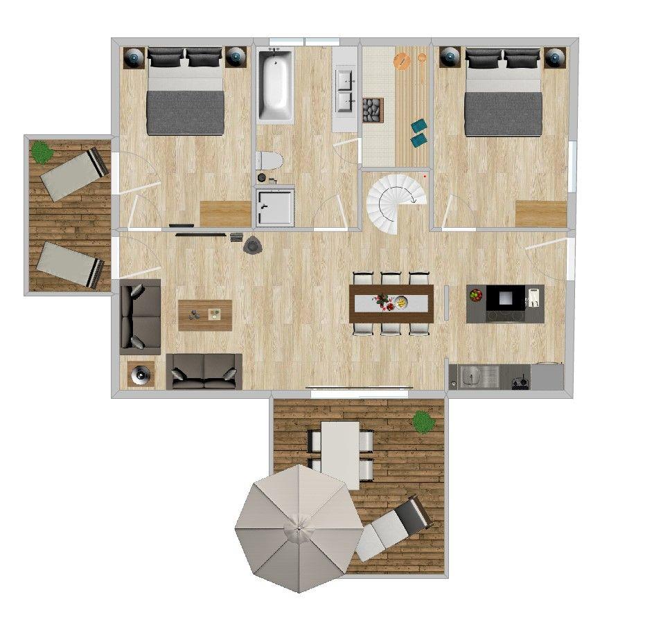 Die ruhig gelegene Wohnung 'Piratennest' mit 85 m² bietet in der ersten Etage jeglichen Komfort und Luxus für 4 Personen. Der angegebene Preis bezieht sich immer auf 2 Erwachsene und 2 Kinder, extra Personen können ggf. auf Anfrage dazu gebucht werden. Zur Ausstattung gehören: Bad mit Sauna und Whirlwanne, Gäste WC, 2 Eltern- Schlafzimmer mit Doppelbett, Kinderzimmer mit 2 Einzelbetten im Dachgeschoss (Galerie), offene voll ausgestattete Wohn- Küche, Kamin inkl. Holz, Flachbildschirm, DVD, kostenloser Internet und W-LAN Anschluss, Fußbodenheizung, Safe für Ihre Wertsachen, große Dachterrasse mit Ostseeblick und hochwertigen Liegen, Westbalkon, Parkplatz direkt am Haus. Die beiden Elternschlafzimmer mit je einem Doppelbett, sowie das Kinderzimmer mit zwei Einzelbetten, laden zum gemütlichen Schlafen ein. Die voll ausgestattete Küche bietet jeglichen Komfort: Spülmaschine, Kaffeemaschine, Toaster, Wasserkocher, Eierkocher, Mikrowelle, Kühl- und Gefrierschrank, Töpfe, Pfannen, Geschirr, Besteck, Salz, Pfeffer, Aluminiumfolie, Backpapier etc. gehören zu unserer Standartausstattung. Im Wohnzimmer erwartet Sie ein Flachbildschirm mit DVD Recorder, ein kostenloser WLAN Anschluss um immer Up to Date zu sein, ein dänischer Kaminofen inklusive Holz und die Fußbodenheizung für wohlige Wärme an kalten Tagen.