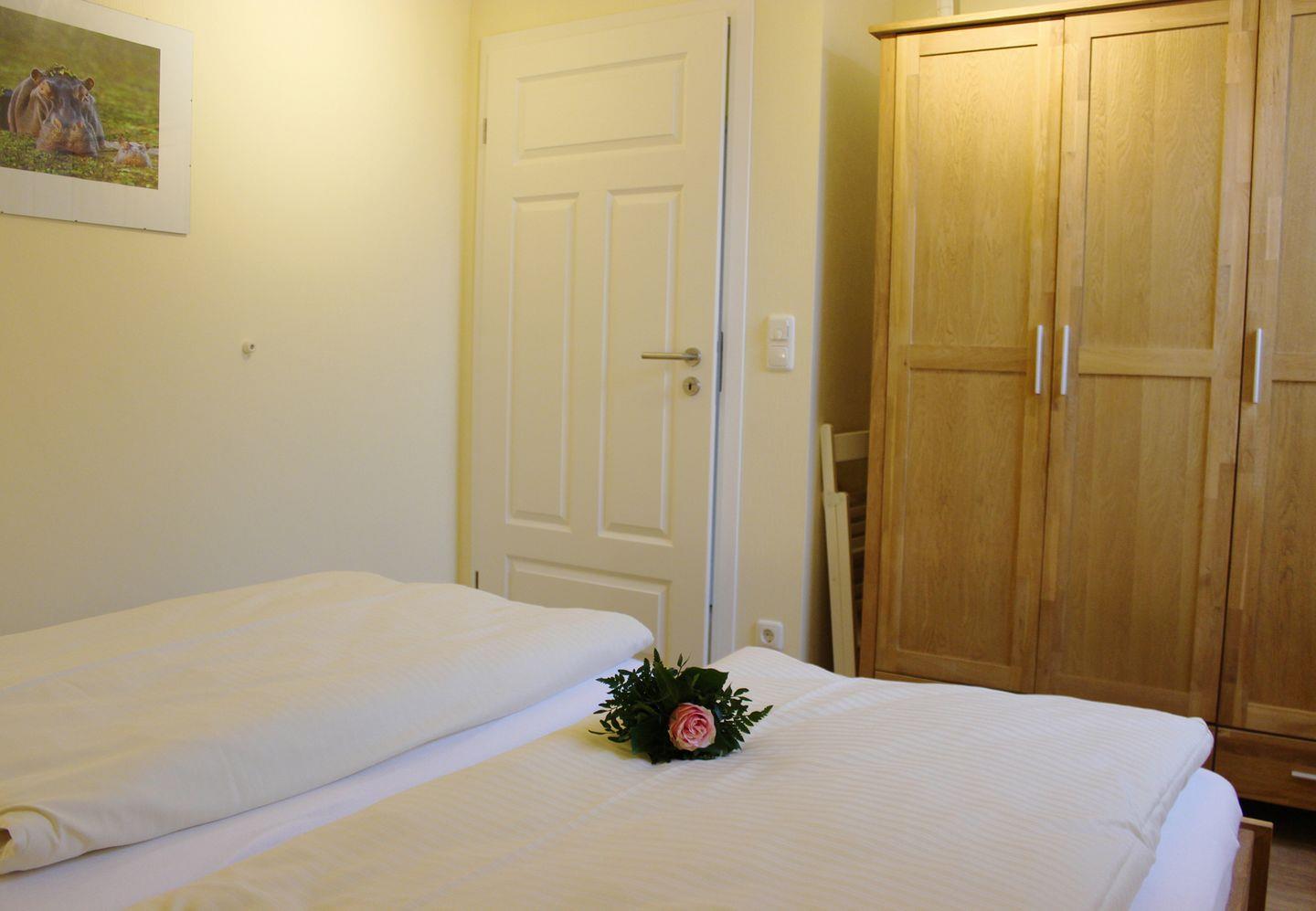 OG 1 Schlafzimmer mit Doppelbett, 2 Schlafzimmer mit je 2 zusammenstehenden Einzelbetten