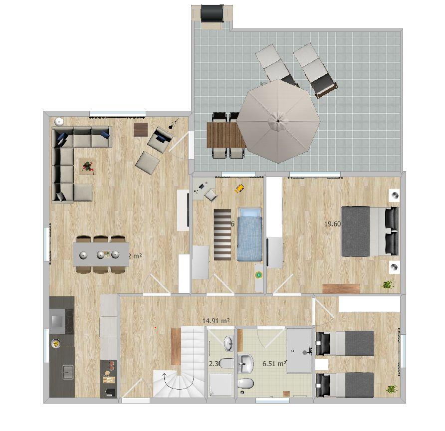 - 100 m² Wohnfläche (Erdgeschoss) mit eingezäuntem Garten und großer Südwest-Terrasse