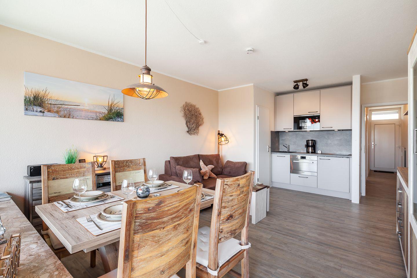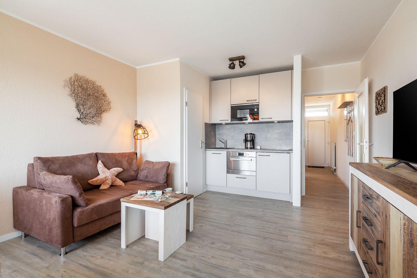 Die Küche befindet sich im Wohnzimmer und ist ausgestattet mit sämtlichen Küchengeräten, die Sie für Ihren Urlaub benötigen.