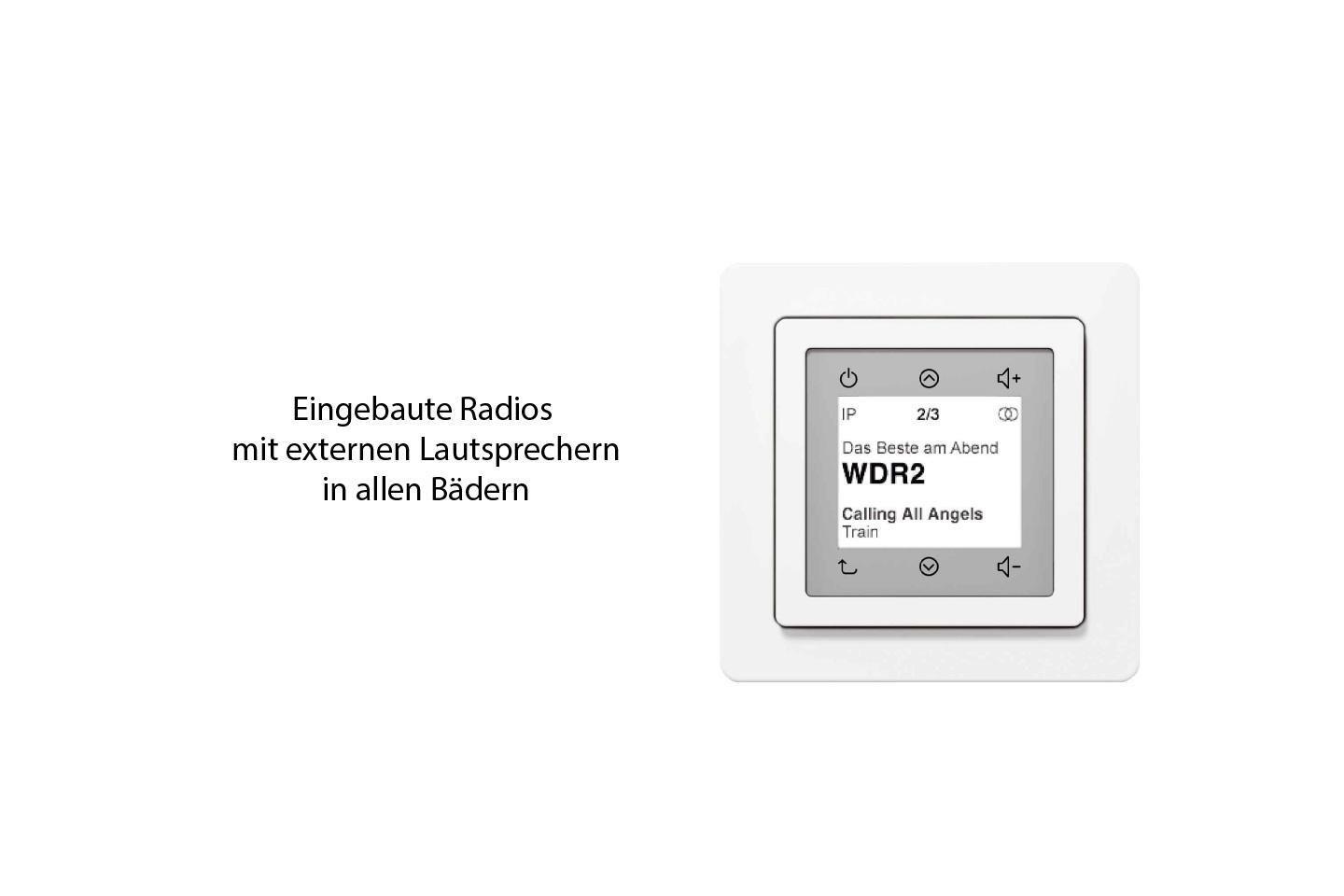 Die beiden Bäder mit großen beleuchteten Wand- und Kosmetikspiegeln sind mit Regenduschen ausgestattet.