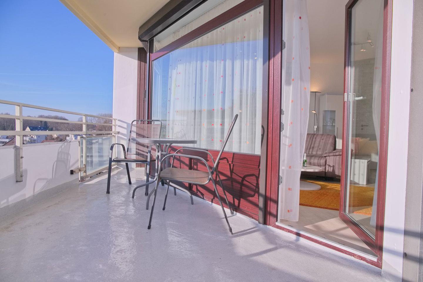 Sehr modern eingerichtete 2-Zimmer-Eckwohnung (ca. 56 m²) für max. 4 Personen in der 7. Etage mit Meerblick und möbliertem Eckbalkon