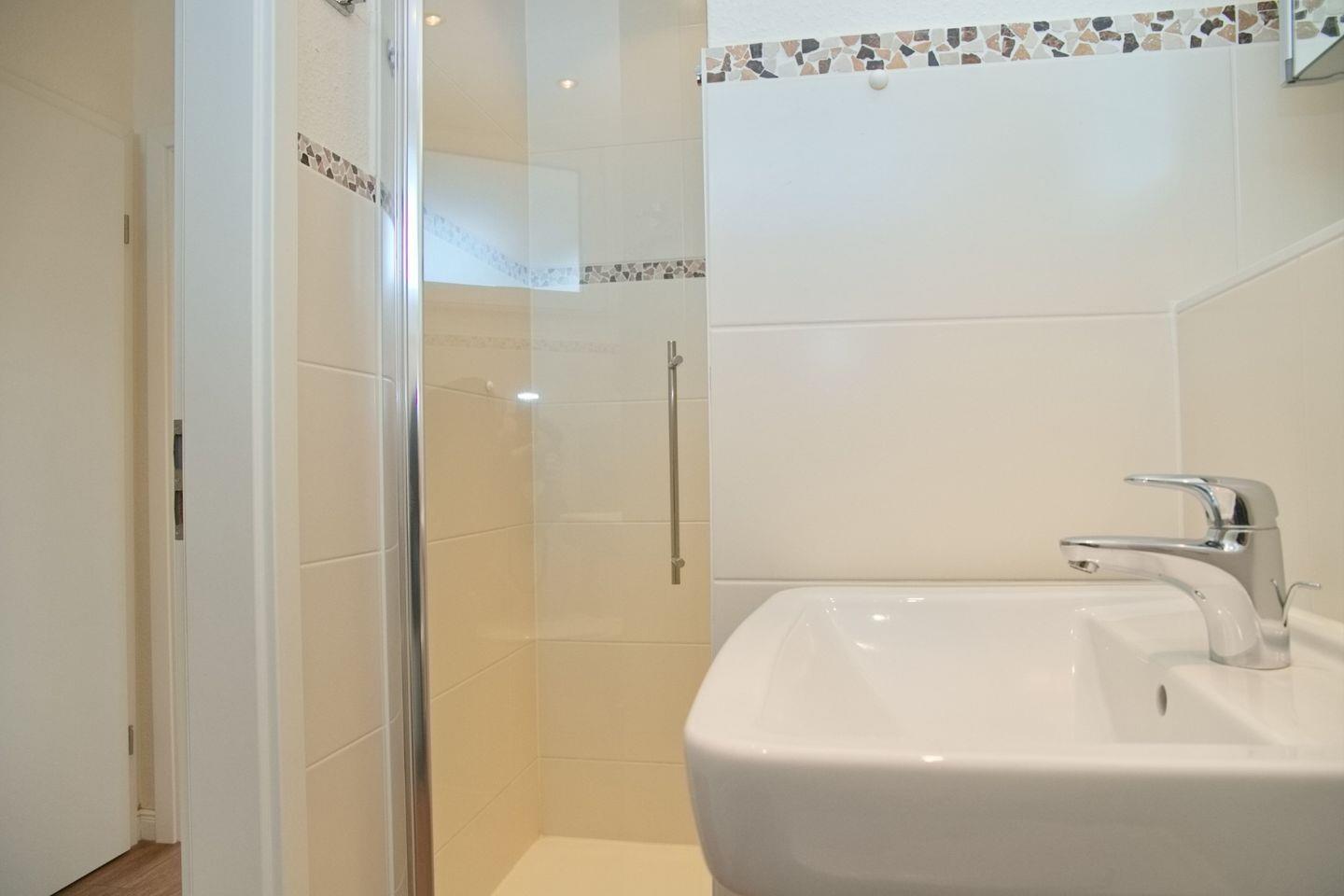 Das hell geflieste Bad ist mit einer großzügigen Dusche, Tageslichtfenster sowie WC und Waschbecken ausgestattet. Der Boden der gesamten Wohnung ist mit Designplanken in Holzoptik ausgelegt. Rauchen ist auf dem Balkon erlaubt, aber nicht in der Wohnung. Haustiere dürfen nicht mitgebracht werden.