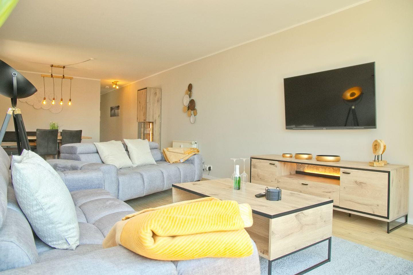 Moderne Ferienwohnung in Grömitz mit Meerblick, WLAN und drei möblierten Balkonen für erholsame Tage am Ostseestrand.